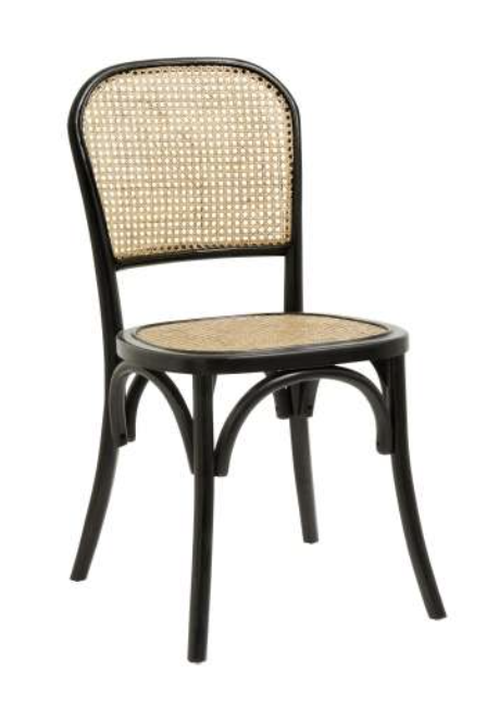 Silla de estilo y diseño 'Thonet' elaborada en madera de abedul pintada en negro, con asiento y respaldo en acabado natural cannage.