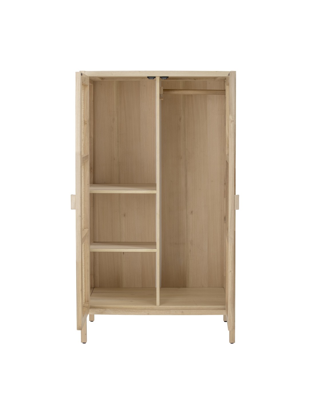 El armario marikka de Bloomingville está hecho de madera de pino con certificación FSC y combina una atmósfera nórdica cálida con un diseño acogedor. Su apariencia ligera y aireada incluye puertas de ratán semitransparente, lo que le da un aspecto natural y con estilo. Ideal para generar un ambiente relajado en el salón, dormitorio o recibidor.