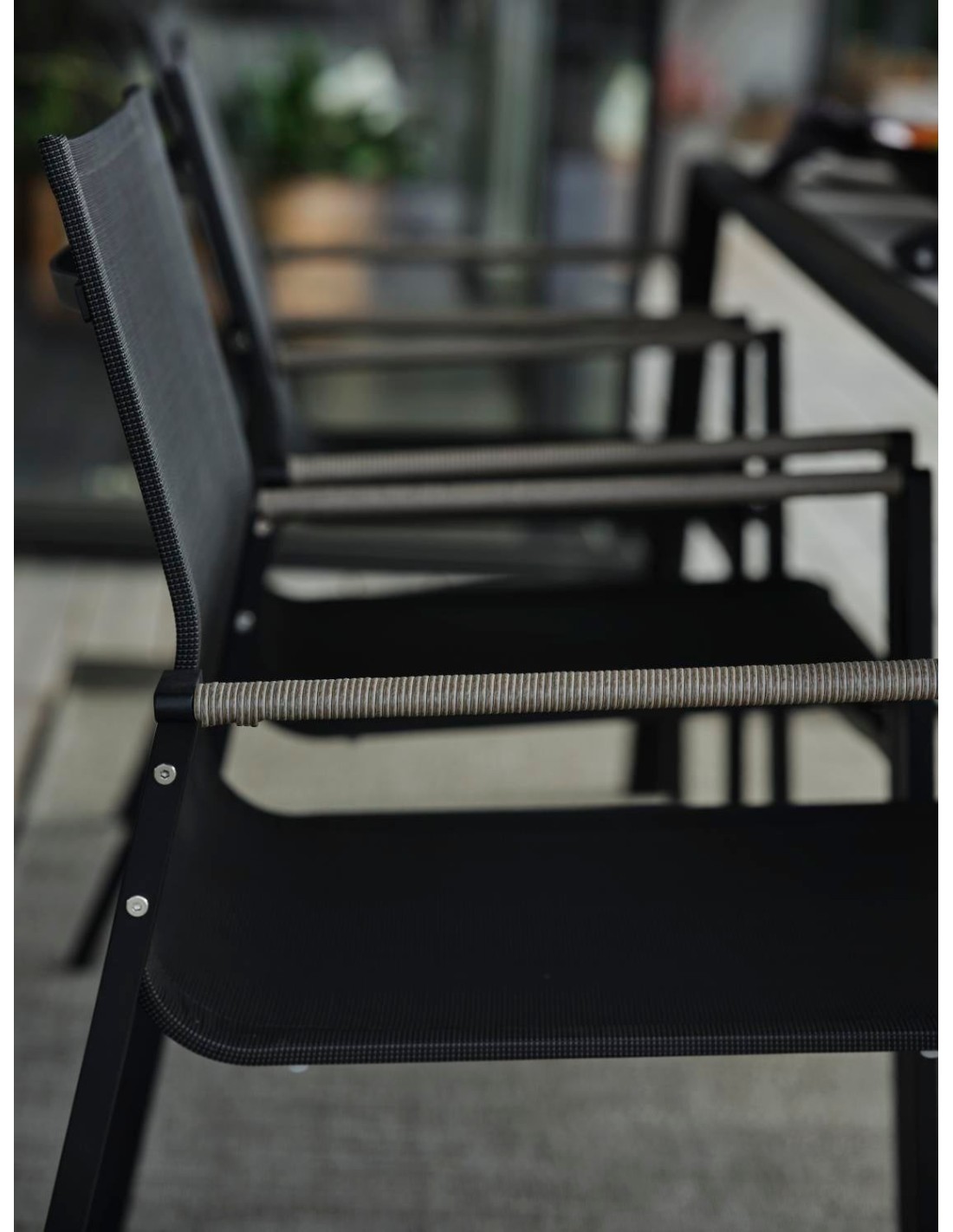 Silla de Comedor Exterior LYRA, Acero Inox / Textilene / Negro / Gris Perla - Brafab