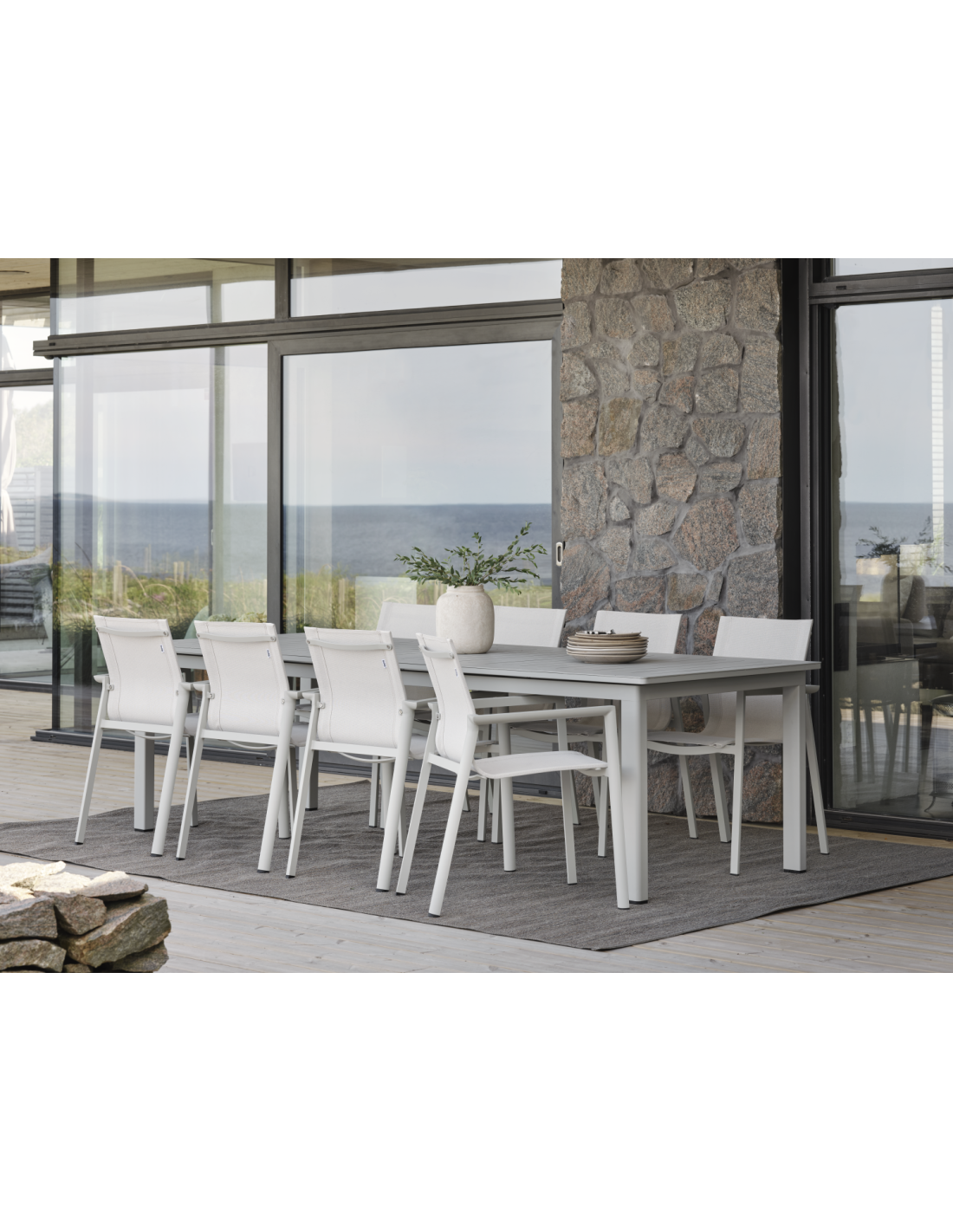 Una mesa de aluminio que realmente lo tiene todo. Lomma XL impresiona aún más con su nueva longitud, de hasta 380 cm. Al combinar diseño y funcionalidad, encarna la elegancia escandinava, la funcionalidad premium y un tamaño generoso. Con su extensión tipo mariposa, que añade 120 cm adicionales, es fácil adaptar la mesa tanto para comidas diarias como para reuniones más grandes.Clica aquí para ir a la sección de productos Brafab de Vackart.