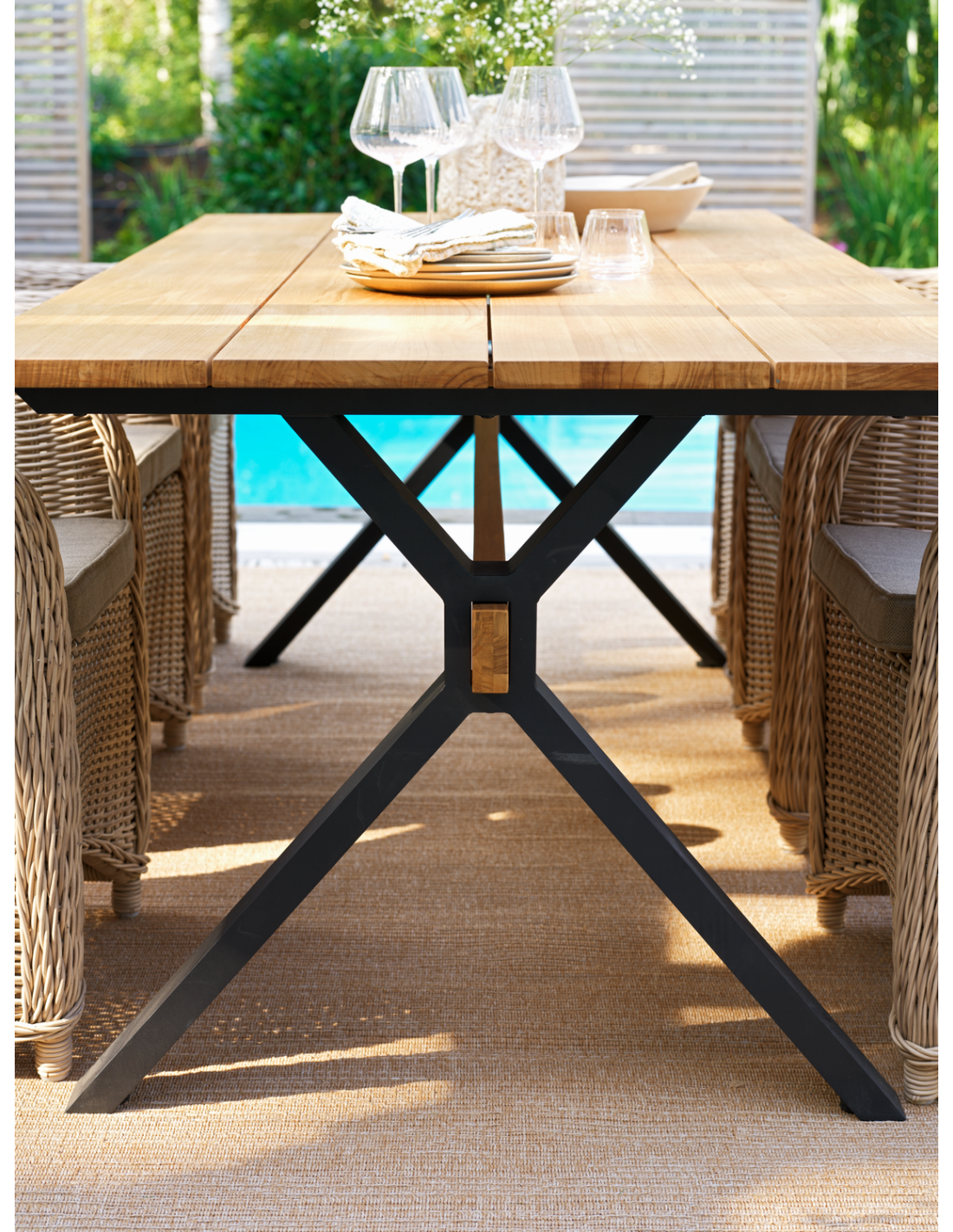 Mesa Exterior MARK 230x95 cm de Comedor, Aluminio, Madera de Teca FSC / Negro / Natural - Brafab