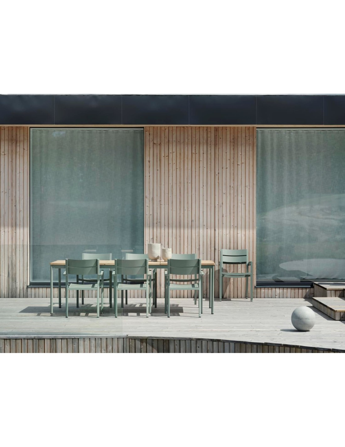 Mesa Exterior NOX 240x90 cm de Comedor, Aluminio, Madera de Teca FSC / Verde Empolvado / Natural - Brafab