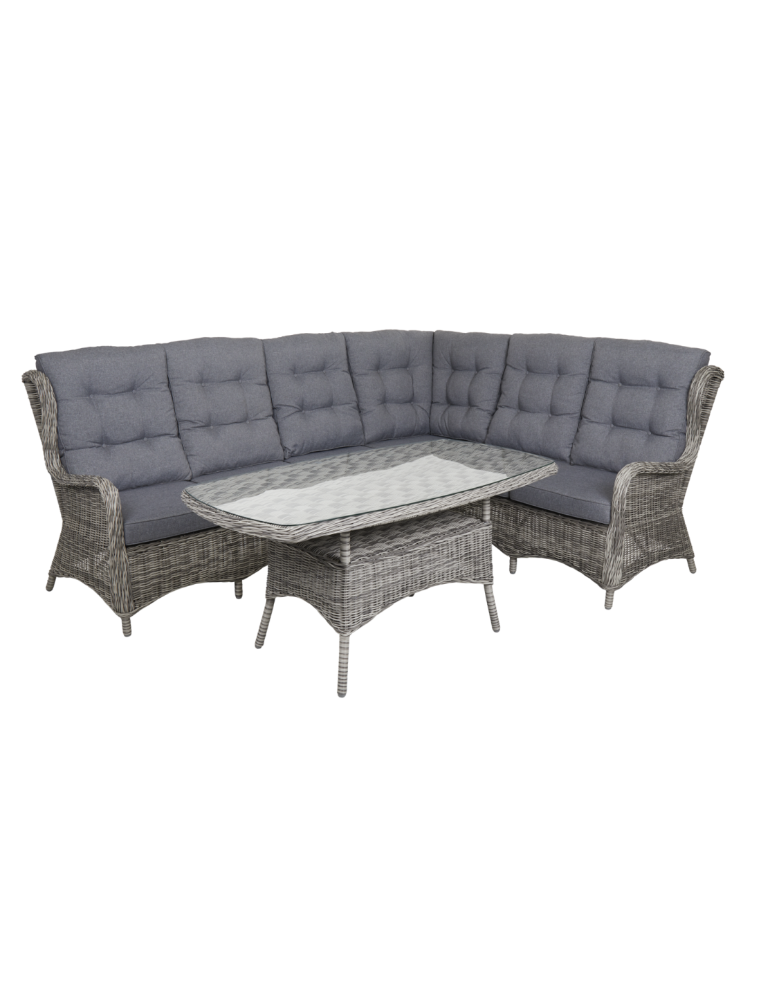 Los contornos suaves y el confort generoso de asiento caracterizan la serie Rosita. Elige entre los cómodos sillones con reposapiés opcionales, mesas en diferentes tamaños y un sofá del que no querrás levantarte. El ratán sintético que parece real es un plus, y la elección entre diseños en gris o en color natural es tuya.Clica aquí para ir a la sección de productos Brafab de Vackart.