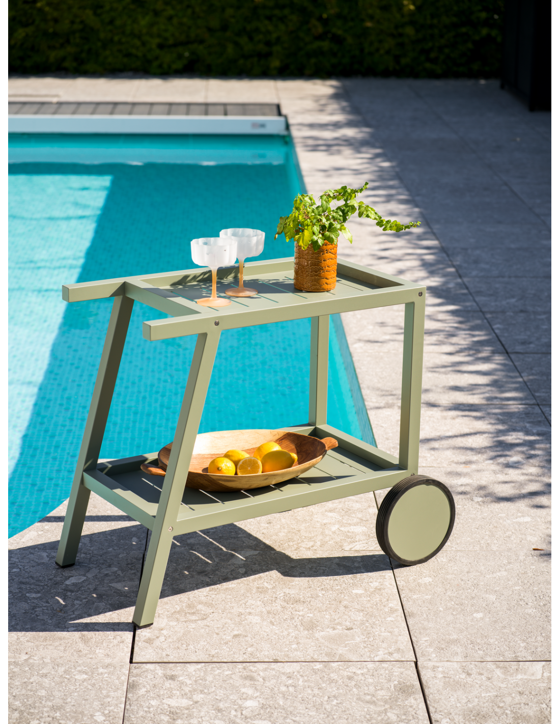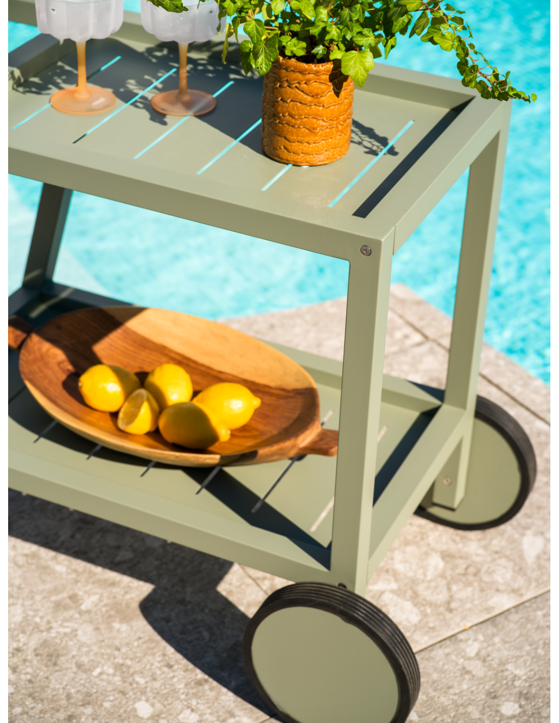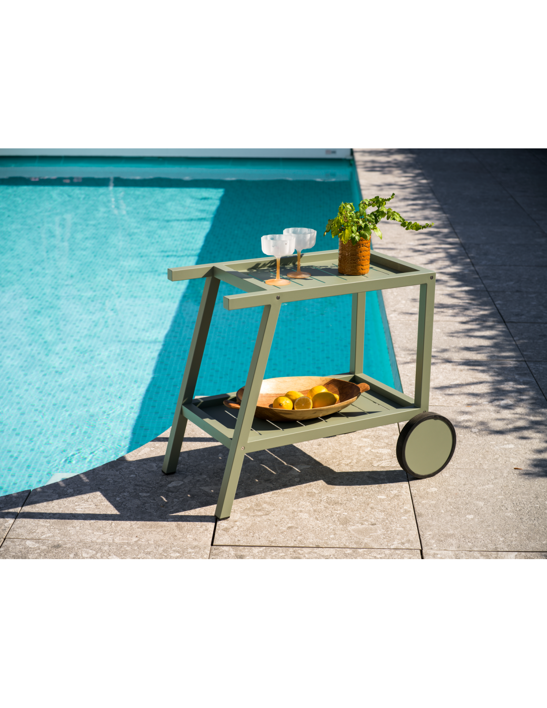 Carrito Exterior SAMVARO 86x49 cm, Aluminio / Verde Empolvado - Brafab