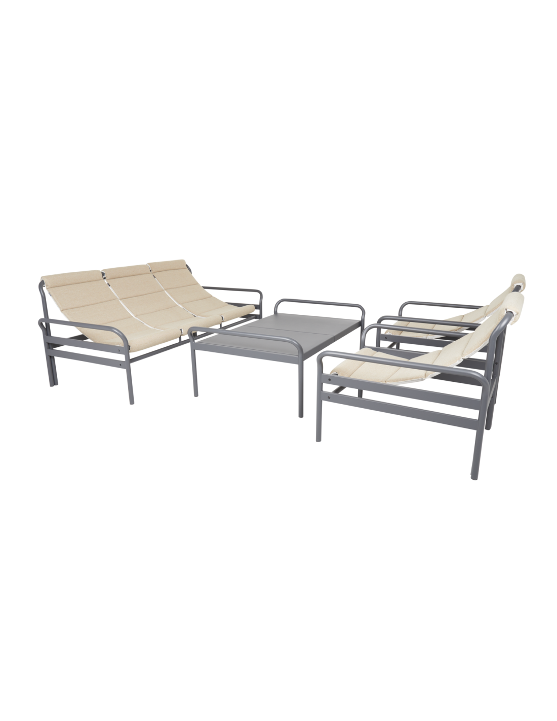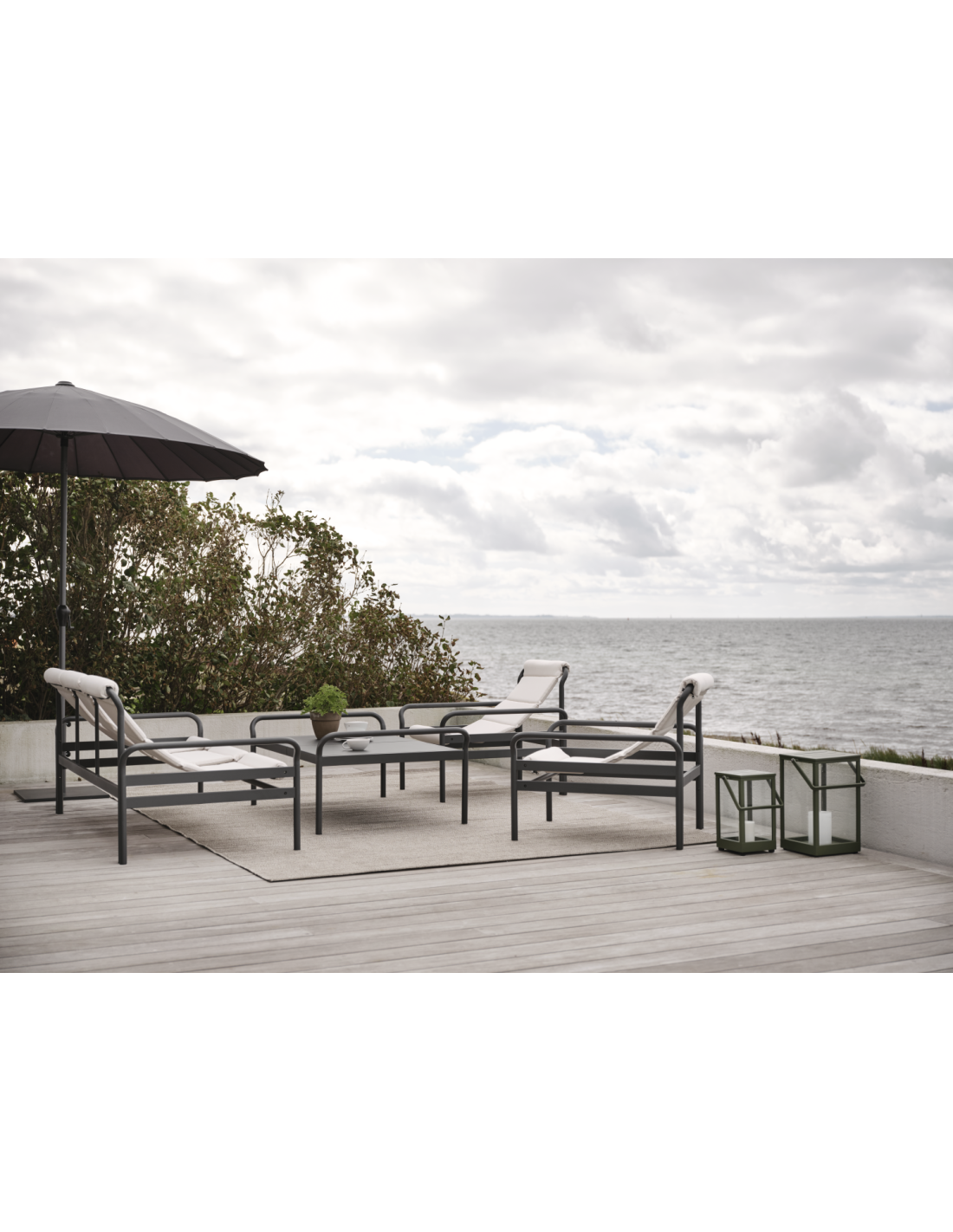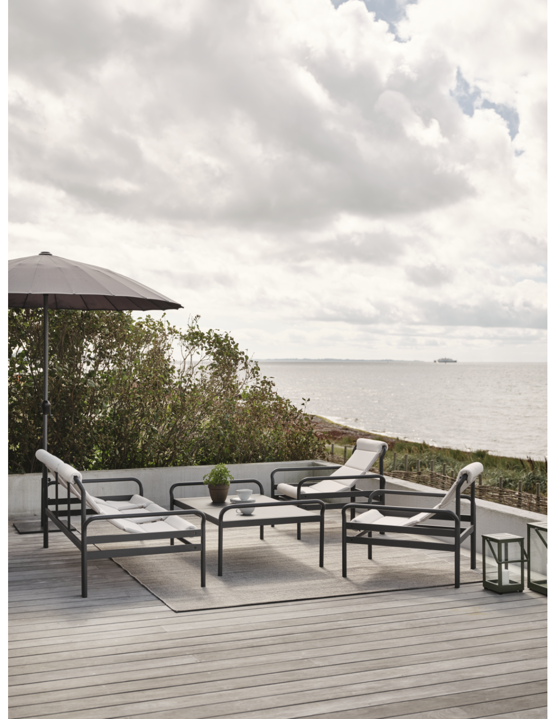 Los contornos juguetones de la serie Sling se aprecian en la mesa de centro. Estable, en aluminio con recubrimiento en polvo y de generosas dimensiones (85 × 135 cm). La estructura tipo asa facilita moverla. La serie Sling tiene una forma que será la comidilla: un diseño suave y redondeado que captura de manera lúdica la esencia del verano. La curva colgante de los cojines no solo es una continuación estilosa de la estructura, también es increíblemente cómoda. La serie incluye un sillón, un sofá y una mesa de centro.Clica aquí para ir a la sección de productos Brafab de Vackart.