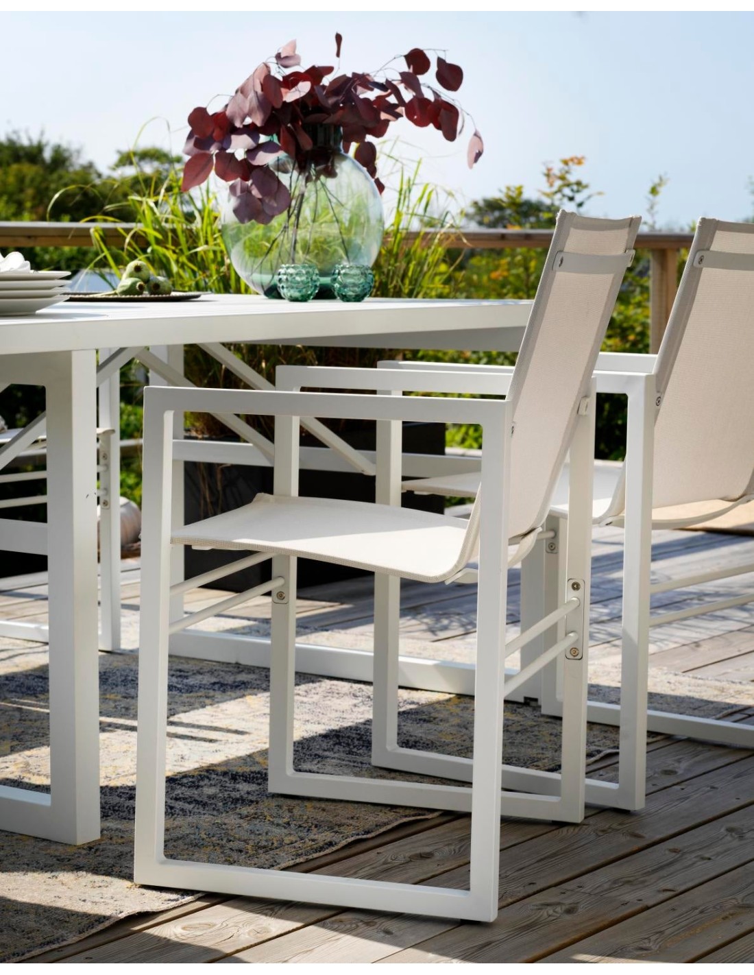Esta serie se caracteriza por una estética nórdica y un diseño moderno y elegante. Con una generosa mesa de comedor con espacio para familia y amigos y sillas cómodas, mesas auxiliares, sillones lounge y mucho más, esta serie convierte tu terraza en el escenario perfecto para relajarte y reunirte. Muchas de las distintas unidades están disponibles tanto en aluminio combinado con Textilene como en teca combinada con acero inoxidable. Diseño: Dick Björk.Clica aquí para ir a la sección de productos Brafab de Vackart.