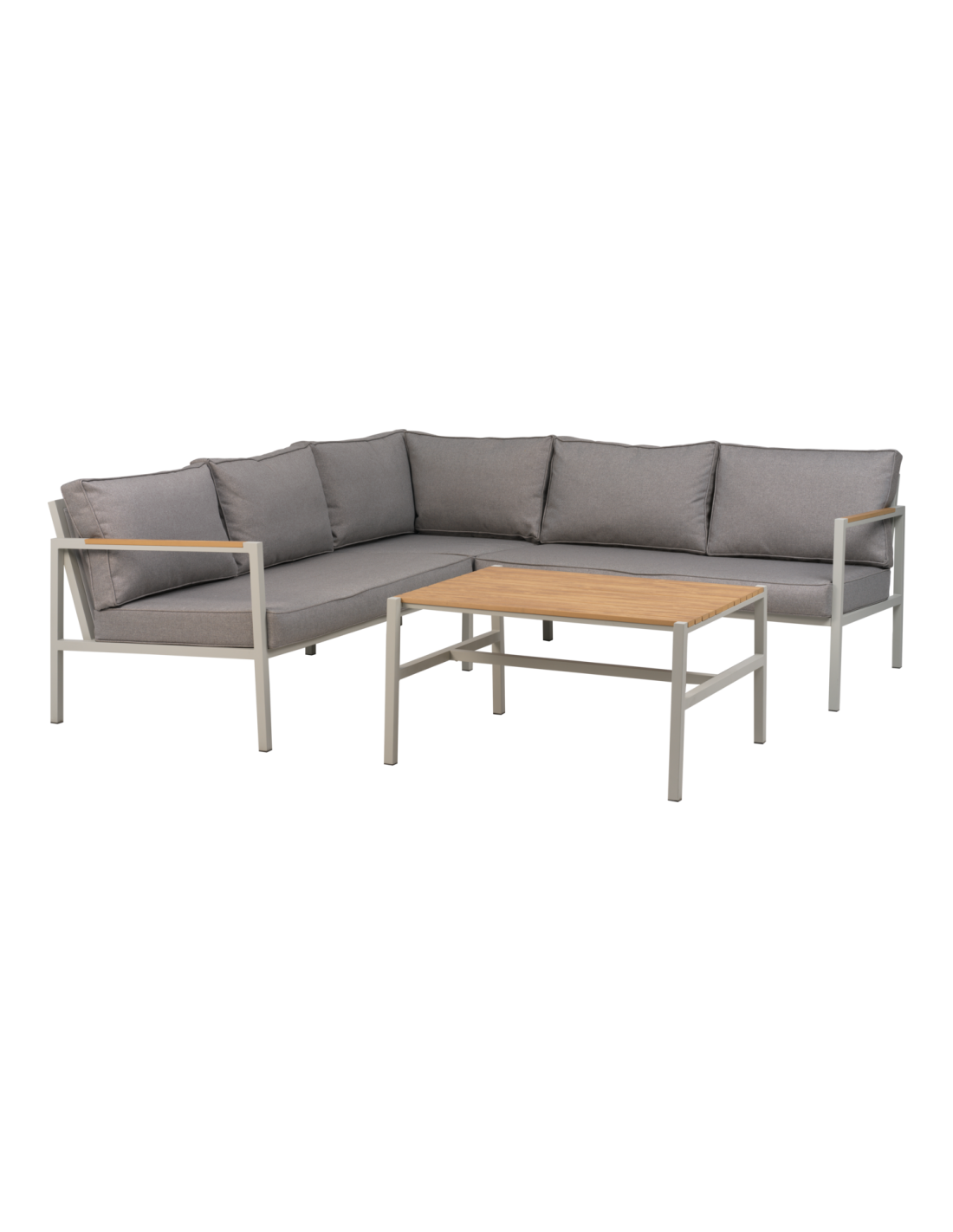 Set Sofá 214x214x81 cm y Mesa de Centro CAP, Aluminio, Textilene, Madera Sintética / Gris Claro / Gris - Brafab