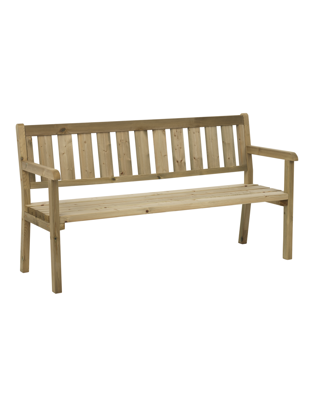Elegante banco de jardín en pino verde impregnado, combinación perfecta de elegancia natural y construcción duradera. Diseño ergonómico para mayor comodidad.Clica aquí para ir a la sección de productos Brafab de Vackart.