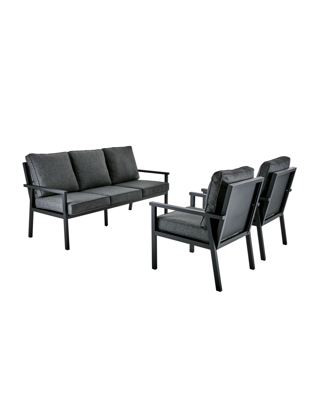 Set Exterior Sofá 3 Plazas y 2 Sillones RANA, Aluminio, Olefina / Negro / Ónix - Brafab
