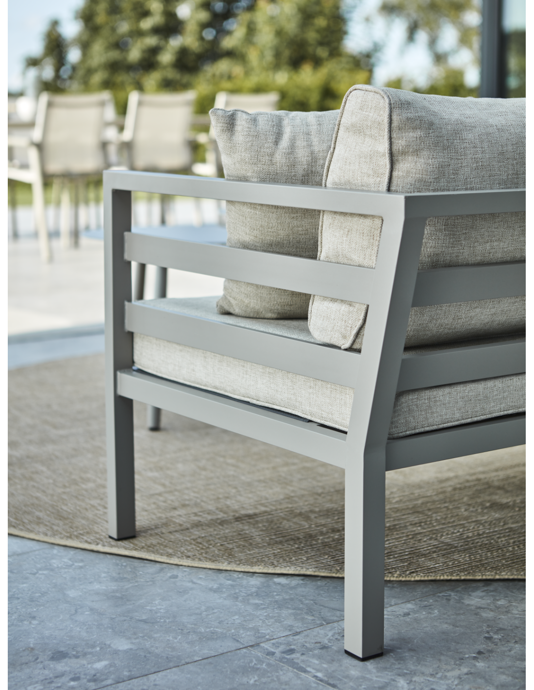 Siéntate con comodidad y estilo. Un amplio y elegante sofá esquinero que extiende tu hogar hacia el exterior. Los asientos generosos están enmarcados por líneas transversales en los reposabrazos y el respaldo tiene un ángulo perfecto para relajarse. Weldon es una serie de atractivo diseño mate con cojines para todo clima.Clica aquí para ir a la sección de productos Brafab de Vackart.