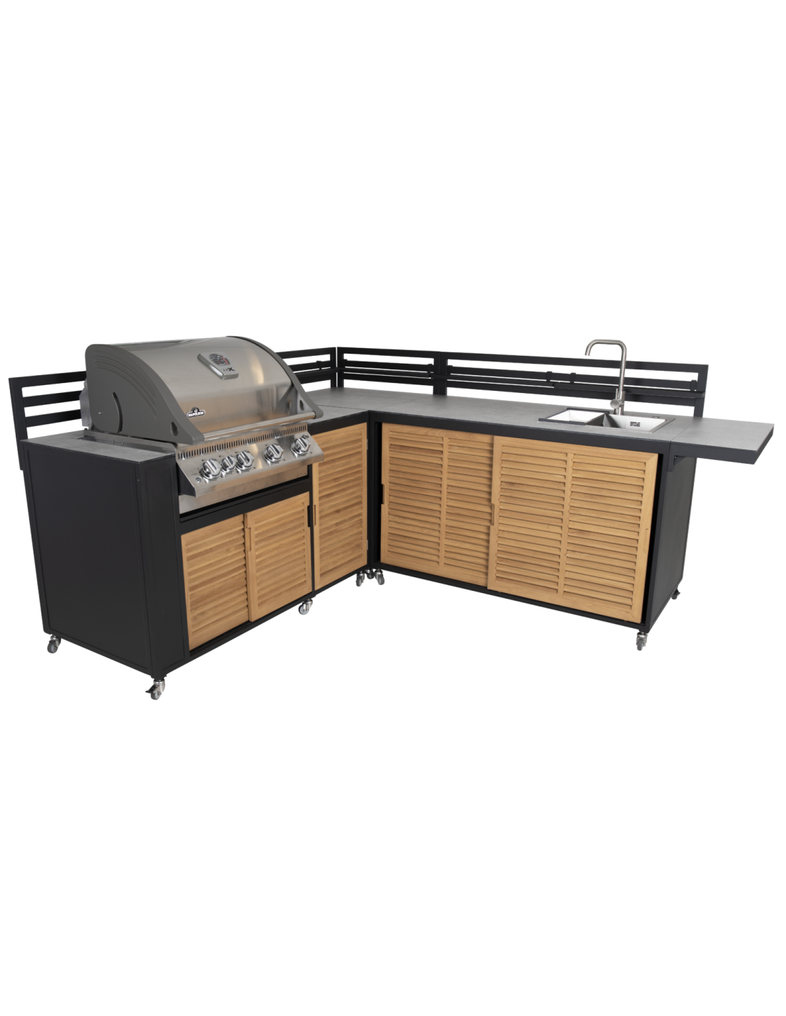 Cocina Exterior FORNAX Módulo Esquina, Aluminio / Teca Natural / Negro - Brafab
