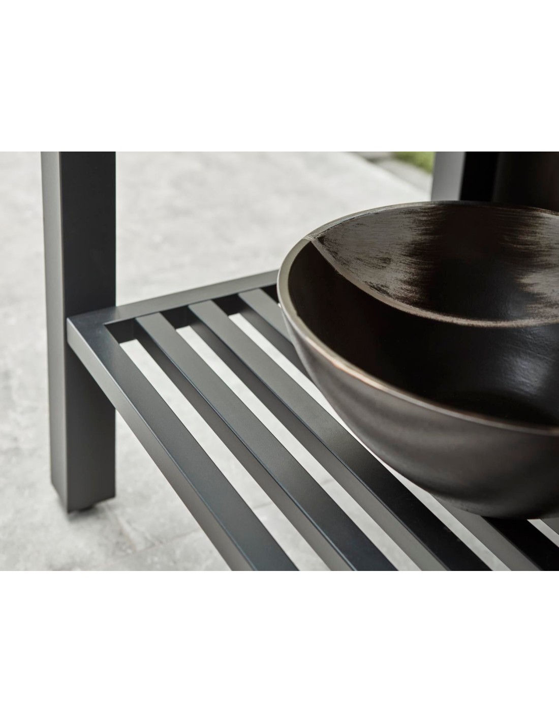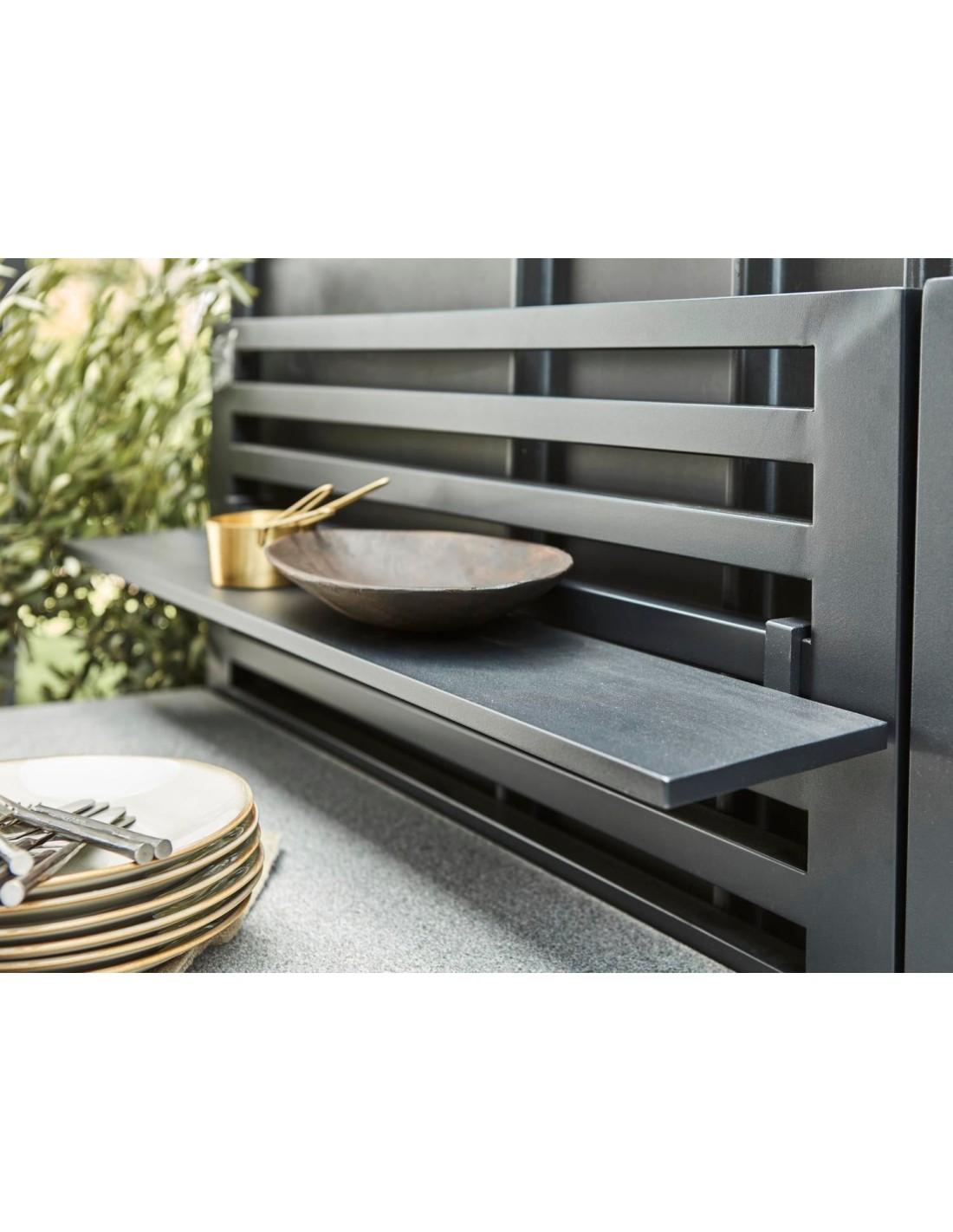 Invita a tus amigos a tu jardín o patio y prepara la comida al momento. La cocina exterior BELLAC, fabricada en aluminio lacado mate, con encimera de piedra, grifo y fregadero, lo hace posible. Disponible en blanco y negro.
