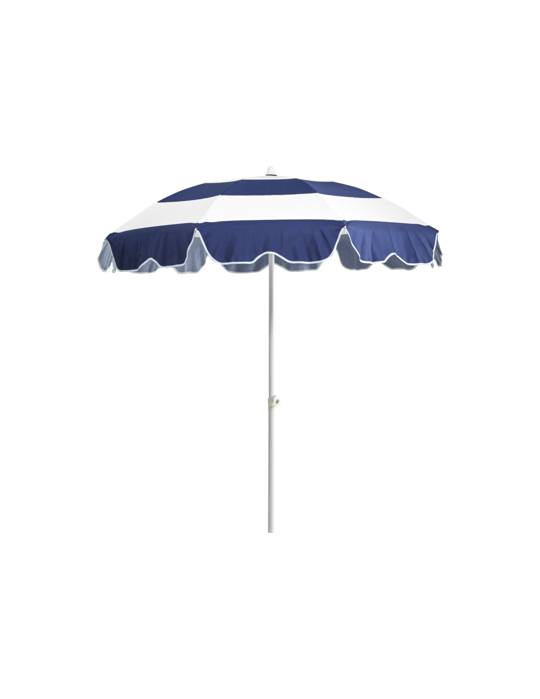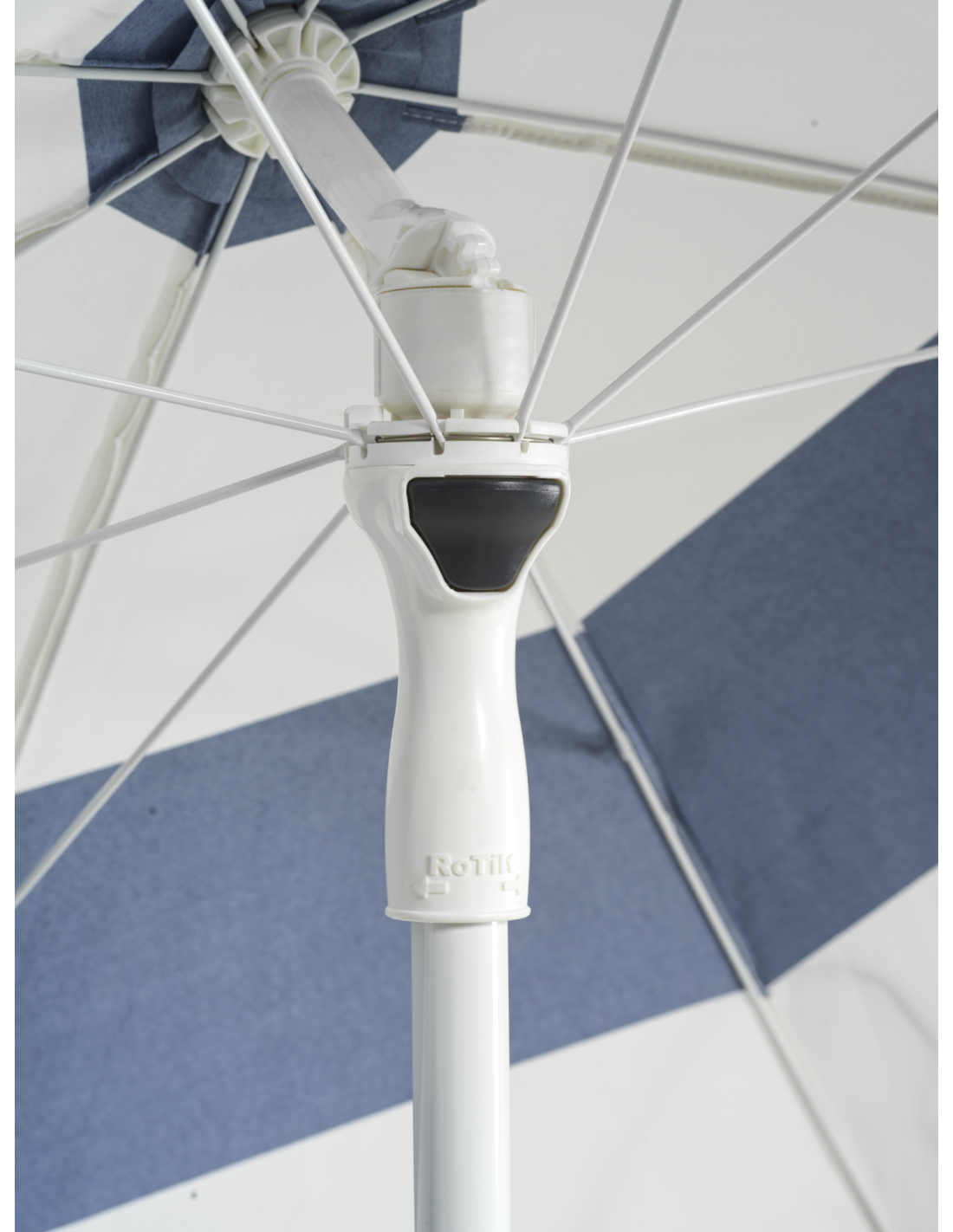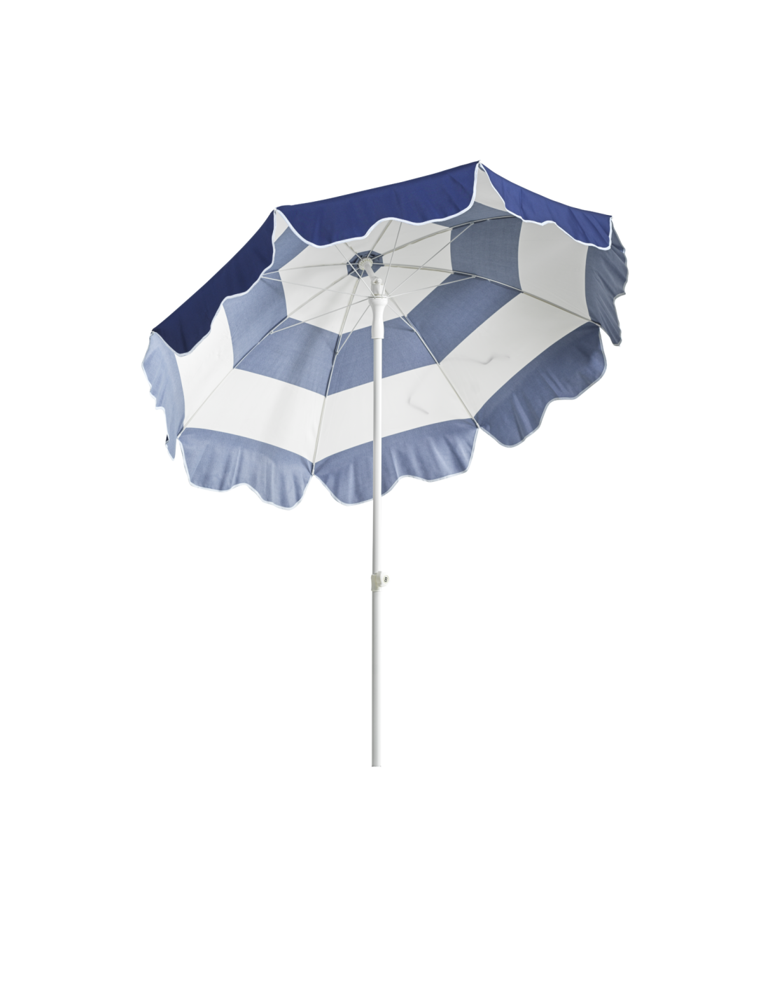 Disfruta de la playa con estilo con la sombrilla FOLLINA, que combina elegancia y funcionalidad. Cuenta con un sistema de apertura tipo push-up y una función de inclinación fácil mediante giro. Disponible en un estampado llamativo o en un clásico tejido azul liso, y en dos tamaños.
