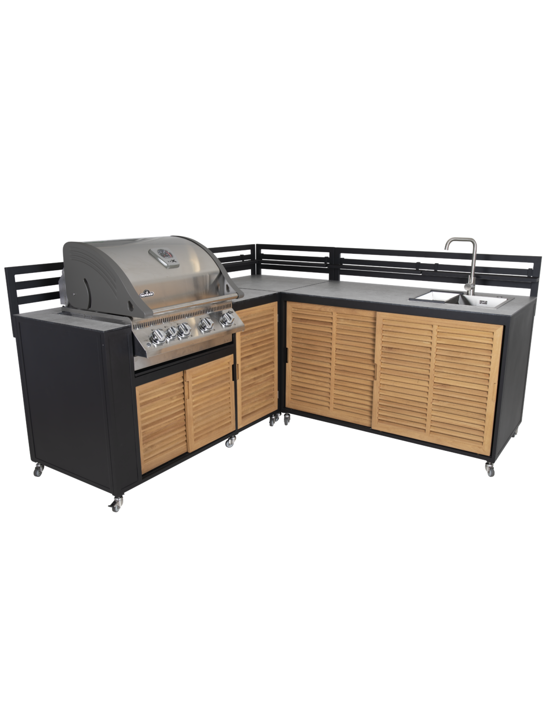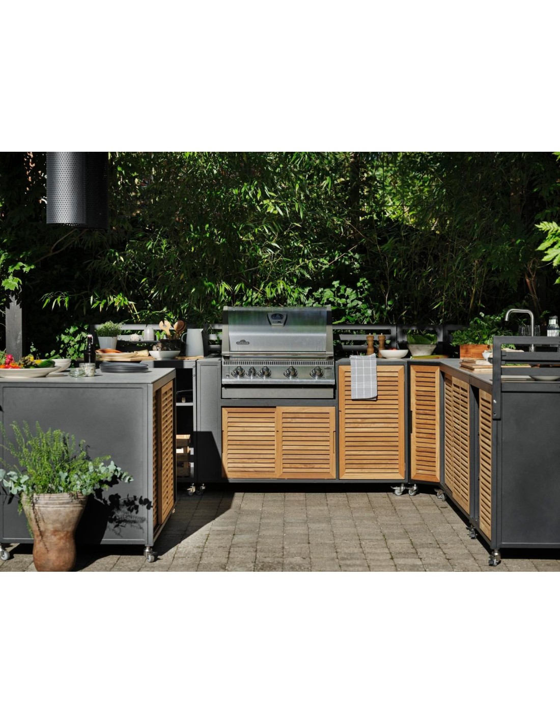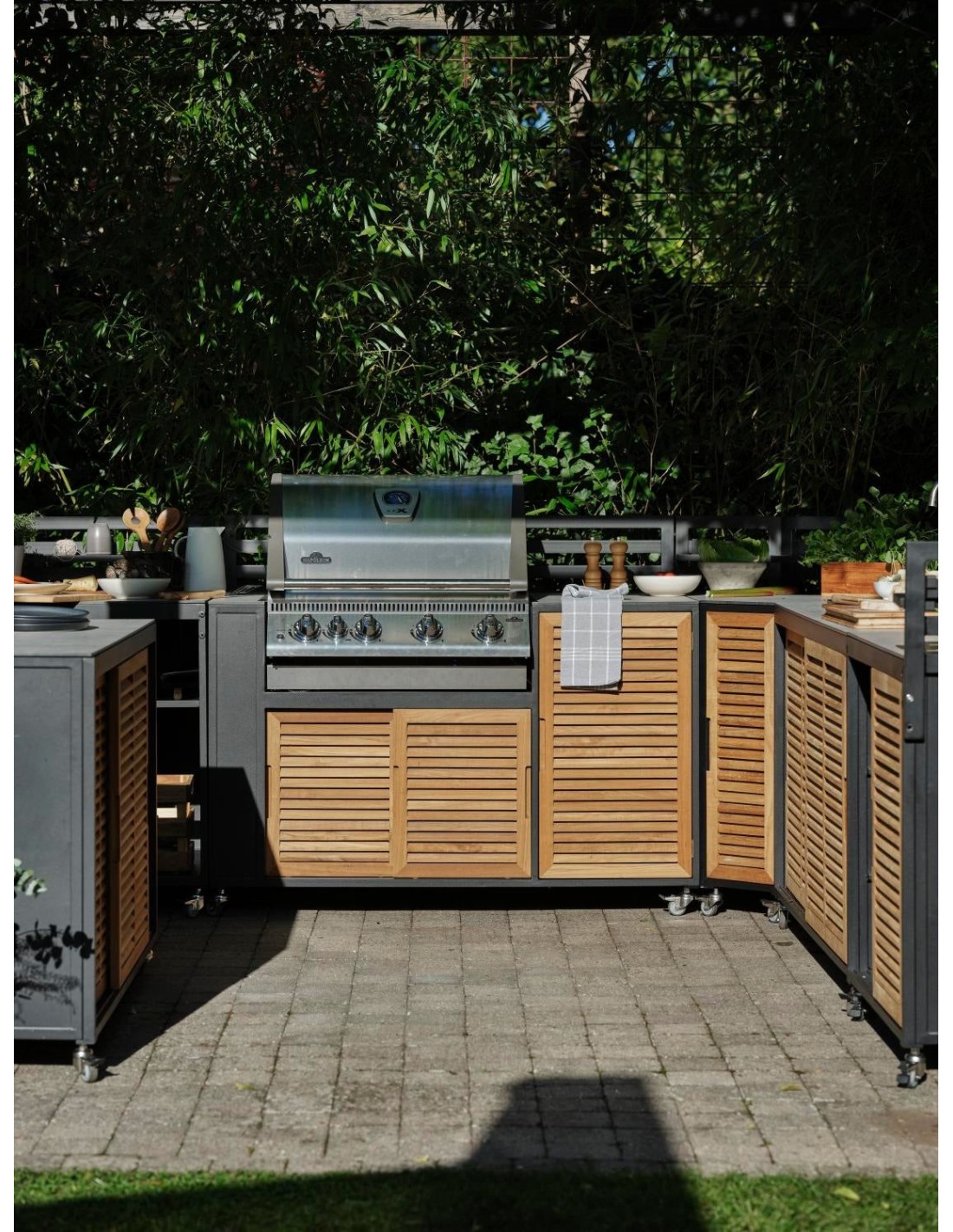 Cocina Exterior FORNAX Módulo Esquina, Aluminio / Teca Natural / Negro - Brafab