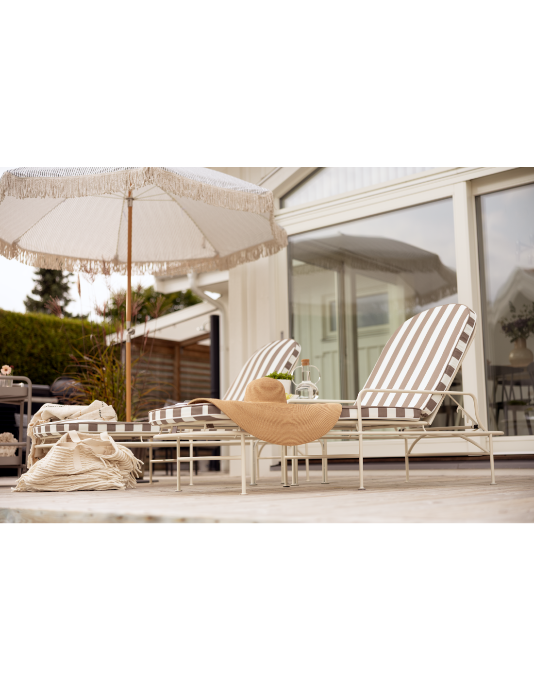 La sombrilla GATSBY es ligera e incorpora una práctica función de inclinación. Los materiales han sido cuidadosamente seleccionados, incluyendo madera de haya barnizada para el mástil, anclajes de acero y detalles en zinc cepillado. Se entrega con una bolsa de tela a juego, lo que facilita su transporte. Un tornillo en la base del mástil permite fijarla fácilmente en la arena de la playa. GATSBY: para disfrutar al máximo del verano. El diseño y la funcionalidad de esta serie garantizan sombra cuando más la necesitas. También está disponible en dos tamaños (Ø185 cm y Ø256 cm).