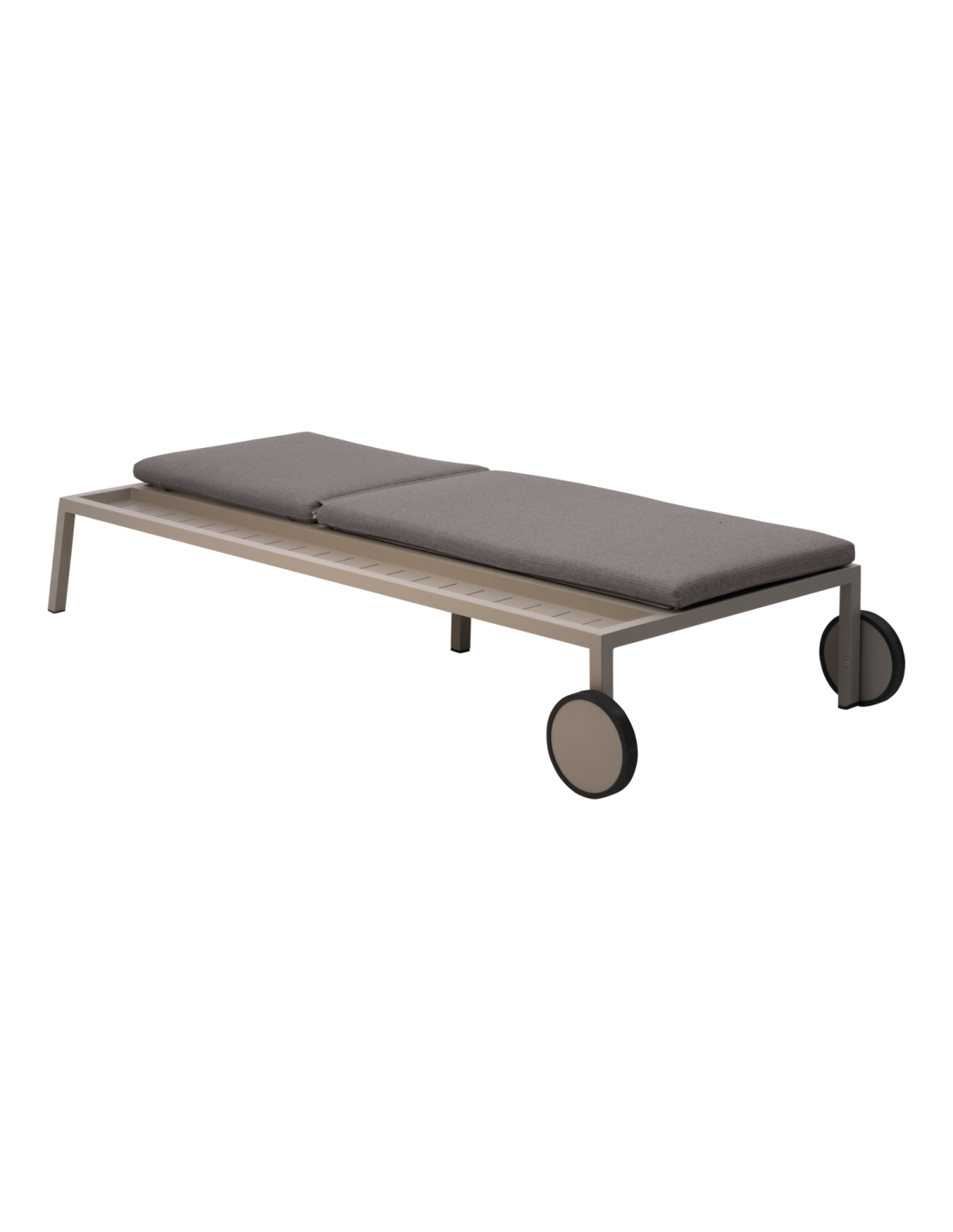 Esta tumbona extra ancha ofrece un confort generoso e incorpora una práctica repisa lateral en el lado derecho para bebidas, libros o protector solar. Gracias a sus ruedas, es fácil de mover y, con sus tejidos suaves y un diseño pensado para la relajación, aporta aún más comodidad y elegancia a tu espacio exterior.