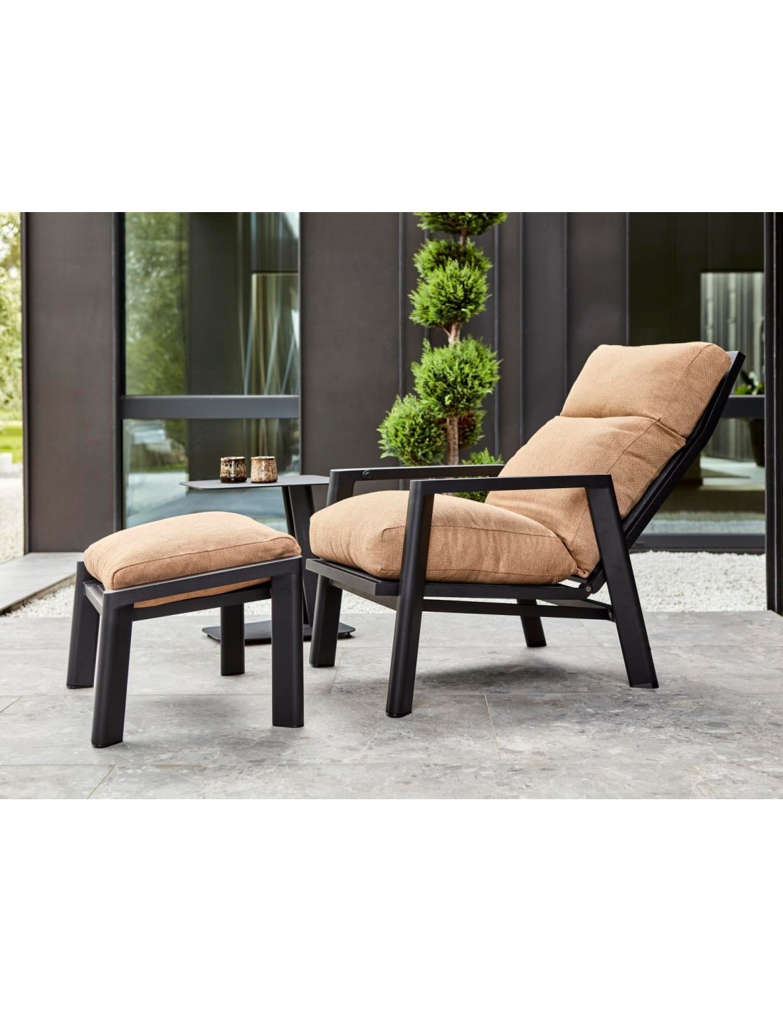 Reposapiés Exterior SLIDE con Cojín, Aluminio / Textilene / Negro / Canela - Brafab