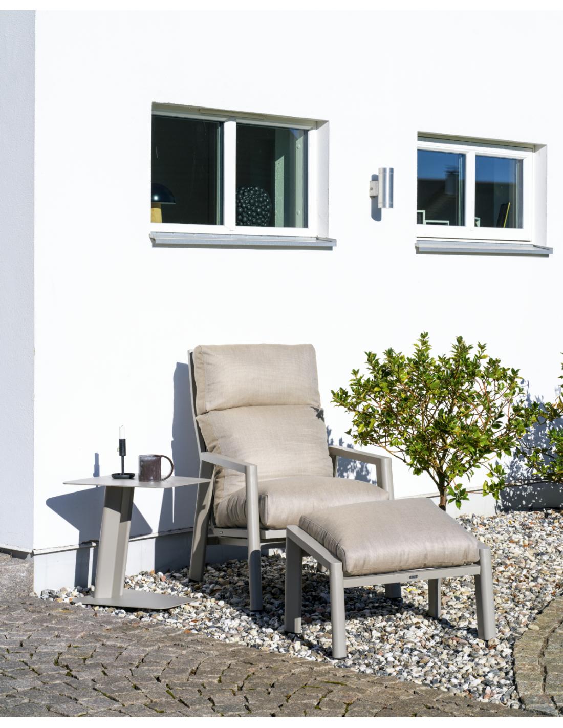 Reposapiés Exterior SLIDE con Cojín, Aluminio / Textilene / Caqui / Marrón Claro - Brafab
