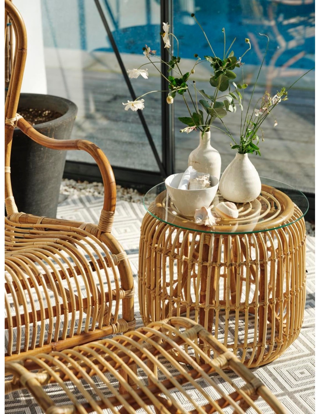 Reposapiés Exterior VALLDA, Ratán Natural - Brafab