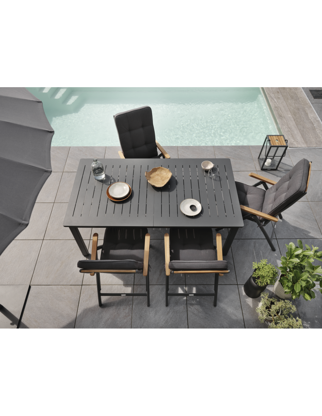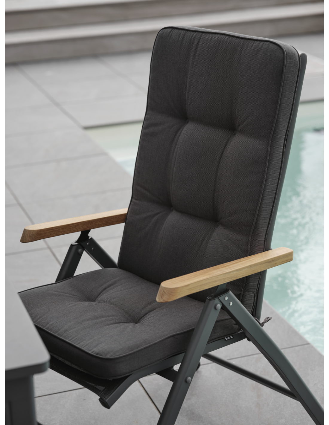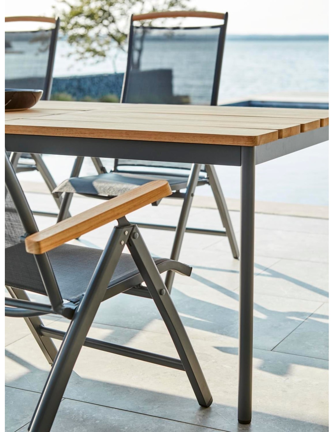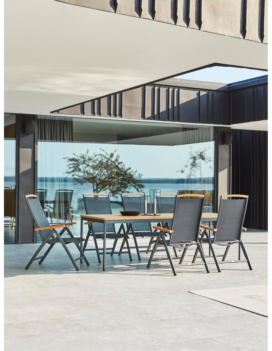 Nuestra silla ajustable Andy sigue siendo una de nuestras sillas más populares. En Brafab estamos orgullosos de haber estado ahí desde el principio y de que “¡tenemos el original!”. Estructura de aluminio y asiento y respaldo de Textilene, ahora también con detalles en teca o nonwood. Andy puede combinarse con nuestras mesas de diferentes tamaños y materiales.