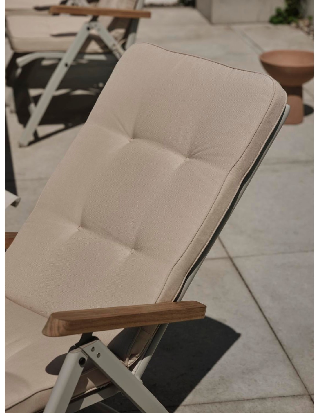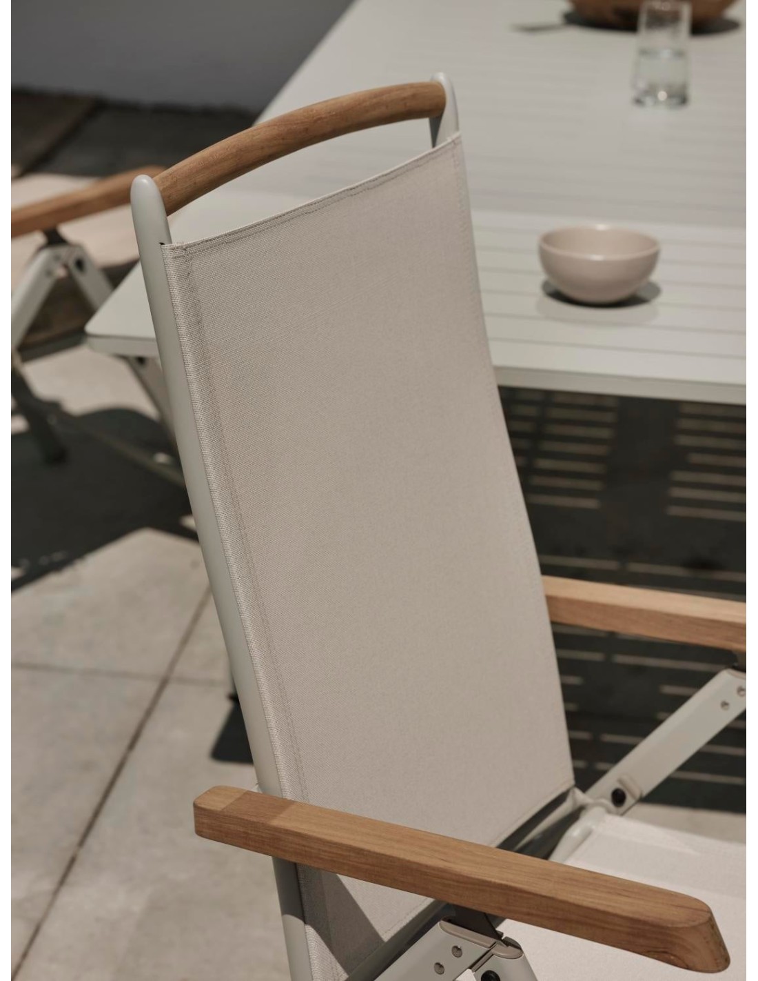 Nuestra silla ajustable Andy sigue siendo una de nuestras sillas más populares. En Brafab estamos orgullosos de haber estado ahí desde el principio y de que “¡tenemos el original!”. Estructura de aluminio y asiento y respaldo de Textilene, ahora también con detalles en teca o nonwood. Andy puede combinarse con nuestras mesas de diferentes tamaños y materiales.