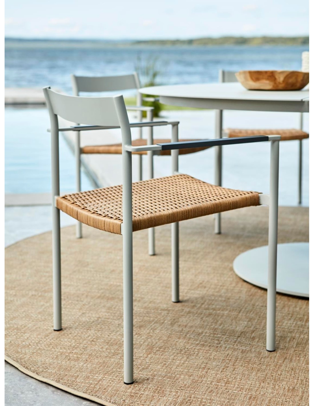 Una silla apilable moderna y práctica. DK rinde homenaje al diseño escandinavo y recuerda a obras maestras de los años 50. Una estructura elegante y estable de aluminio con detalles en contraste que realzan la sensación y mantienen a DK actual durante mucho tiempo. Los colores en contraste del reposabrazos y el asiento trenzado en ratán artificial son detalles que elevan la silla. La sensación de ligereza constante en el diseño es un claro legado de los clásicos escandinavos. Disponible en cuatro colores.