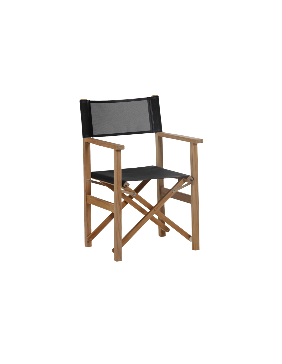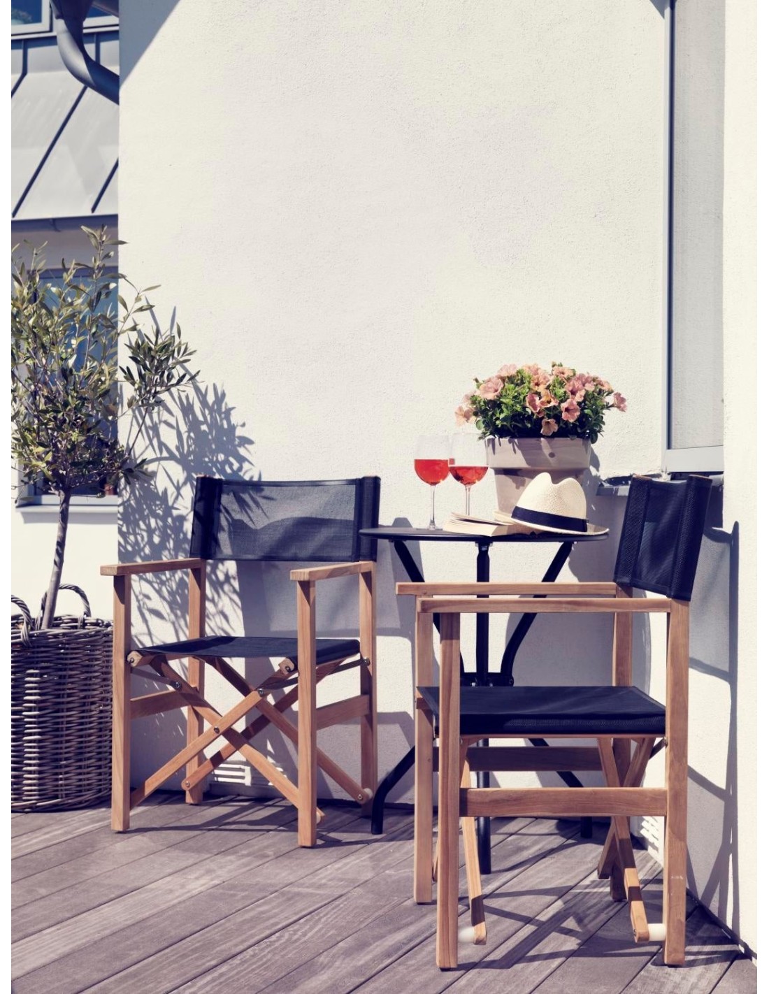 La silla de director: un auténtico clásico en teca cuidadosamente seleccionada y Textilene, con tornillos y herrajes de acero inoxidable. Si necesitas espacio, puedes plegar la silla con una sola acción y volver a desplegarla cuando necesites asientos extra.