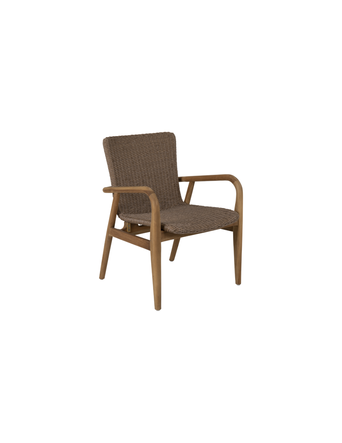Silla de comedor elegante y atemporal que destaca por su diseño contundente. Un lugar cómodo para relajarse y celebrar. El asiento puede ser de listones anchos de teca o de ratán sintético tejido. Lilja se creó tanto para relajarse como para comer, con formas orgánicas y redondeadas en teca. Los elementos robustos transmiten elegancia en sus detalles curvos.
