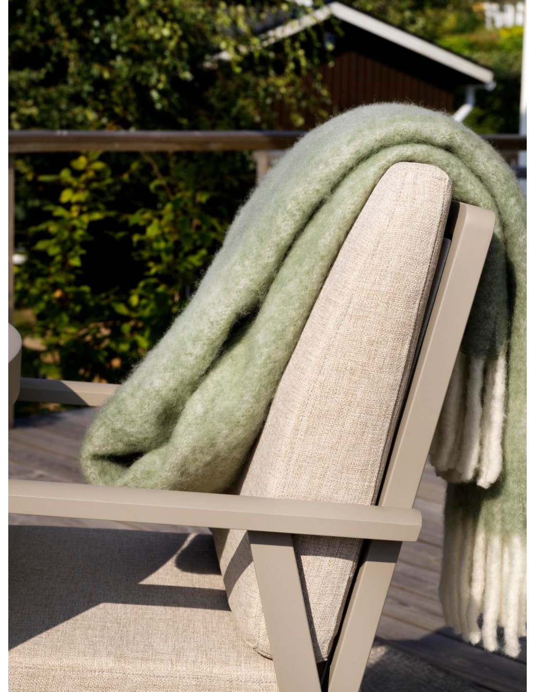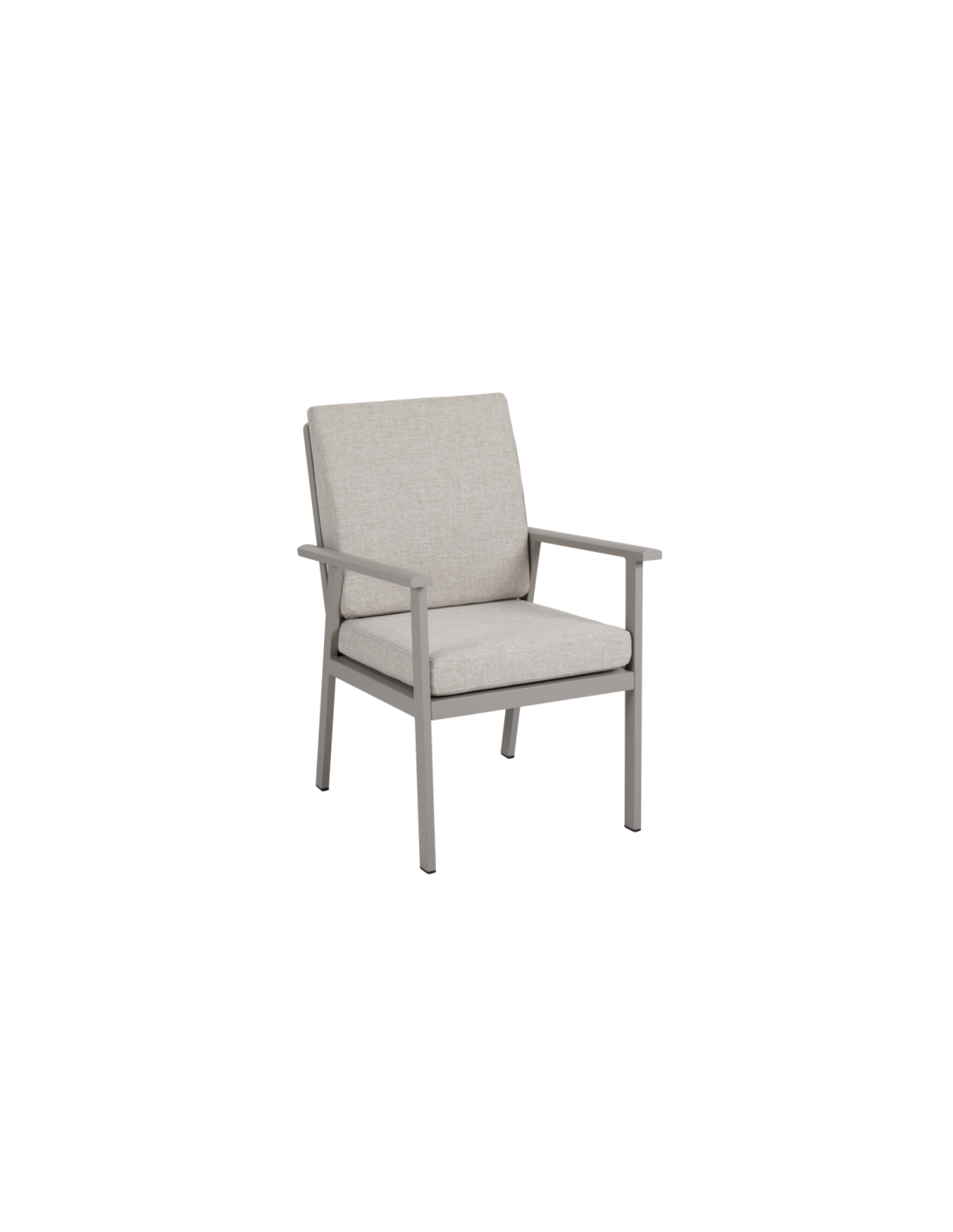 Un sillón atractivo y elegante de la popular serie Samvaro. El ángulo relajado hace que sea ideal para comer y descansar. Confort excepcional gracias a los cojines gruesos, diseñados para proporcionar un apoyo adicional para la espalda. Una serie moderna y a la vez clásica en aluminio que ofrece un abanico de posibles combinaciones. Los contornos suaves y curvados crean una sensación agradable y acogedora en esta nueva serie, con atención al detalle. Disponible con estructura de aluminio en blanco, gris o caqui.