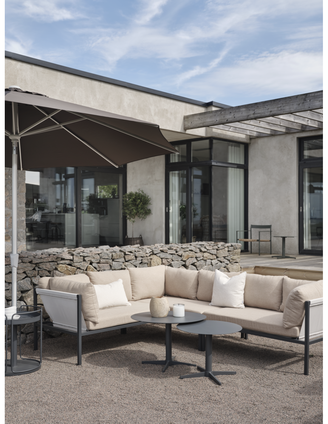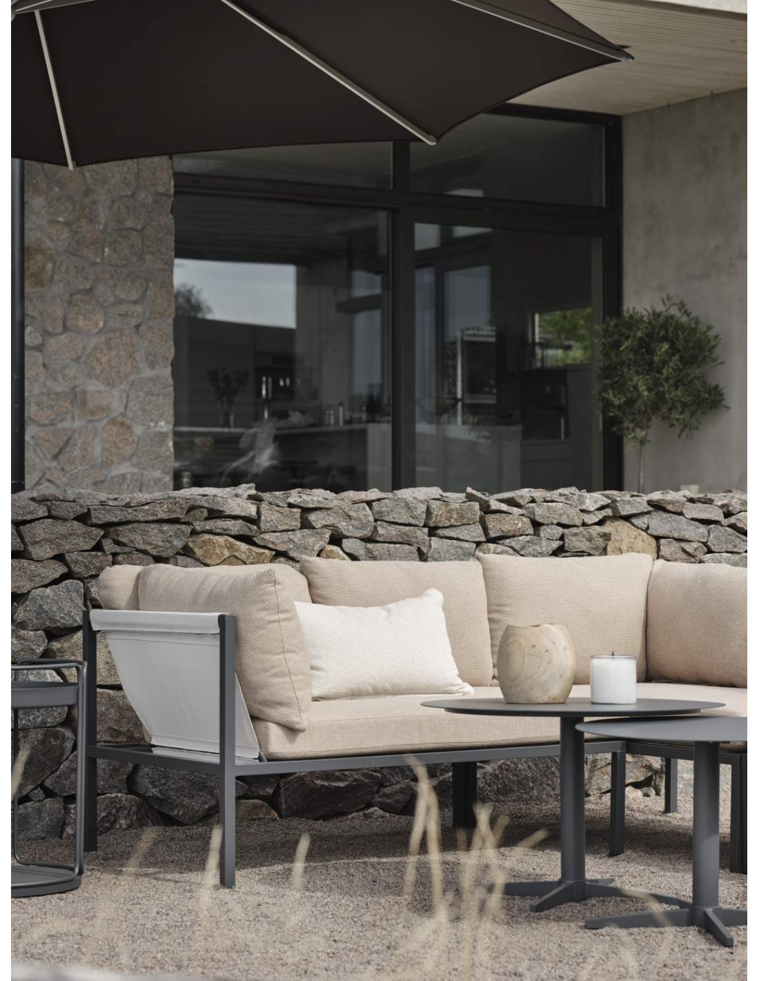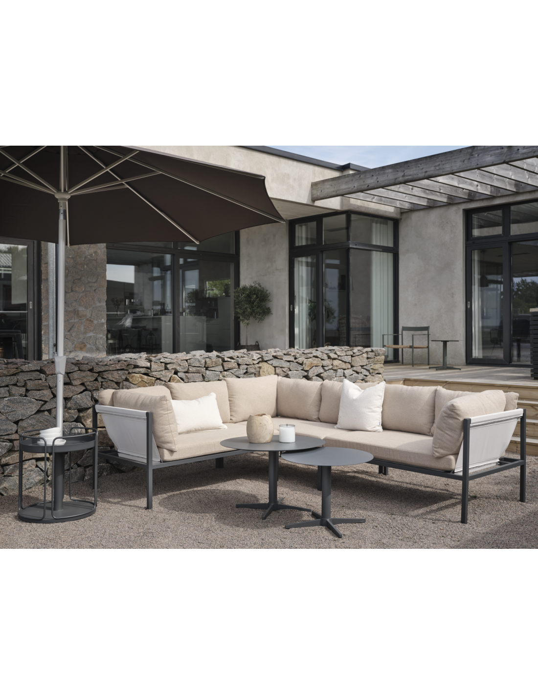Sofá Esquinero Exterior ALLIE, Aluminio, Textilene / Antracita / Beige - Brafab