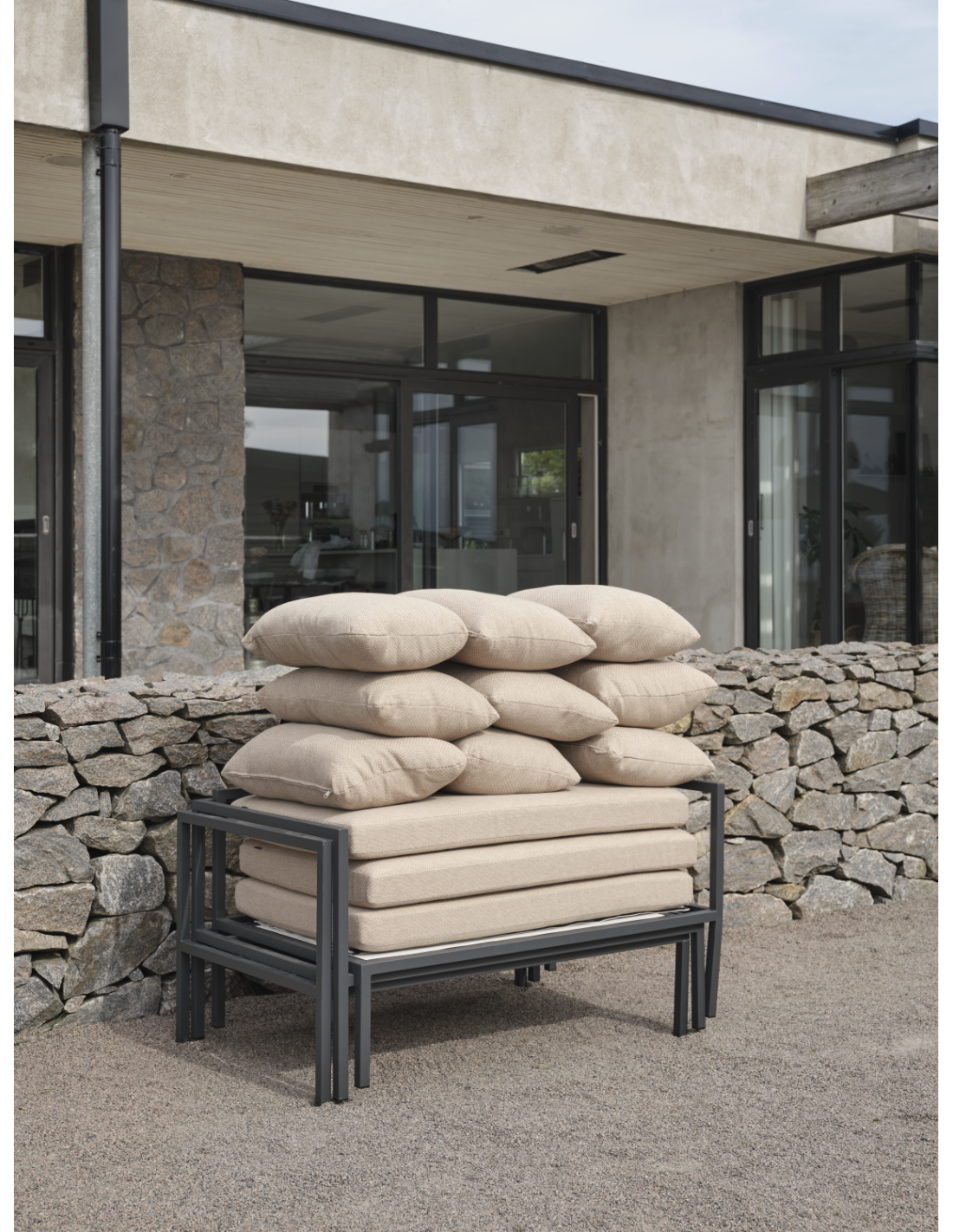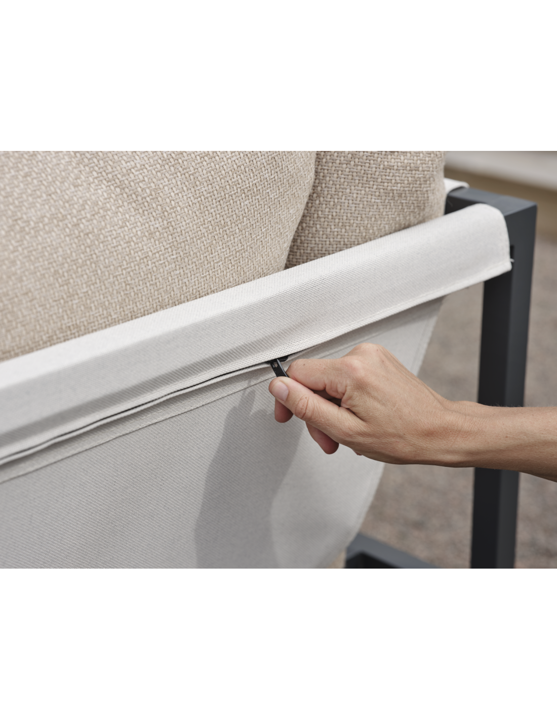 Allie: todo en una sola caja. Descubre la combinación perfecta de simplicidad y sofisticación de diseño, ya que cada elemento, desde la estructura de aluminio hasta el vibrante asiento de Textilene, viene cuidadosamente empaquetado en una única caja. Cojines cómodos en un moderno tejido color beige. Montar tu oasis exterior nunca ha sido tan fácil, permitiéndote centrarte en disfrutar del espacio y no en el montaje. Su construcción inteligente también facilita su almacenamiento durante el invierno.