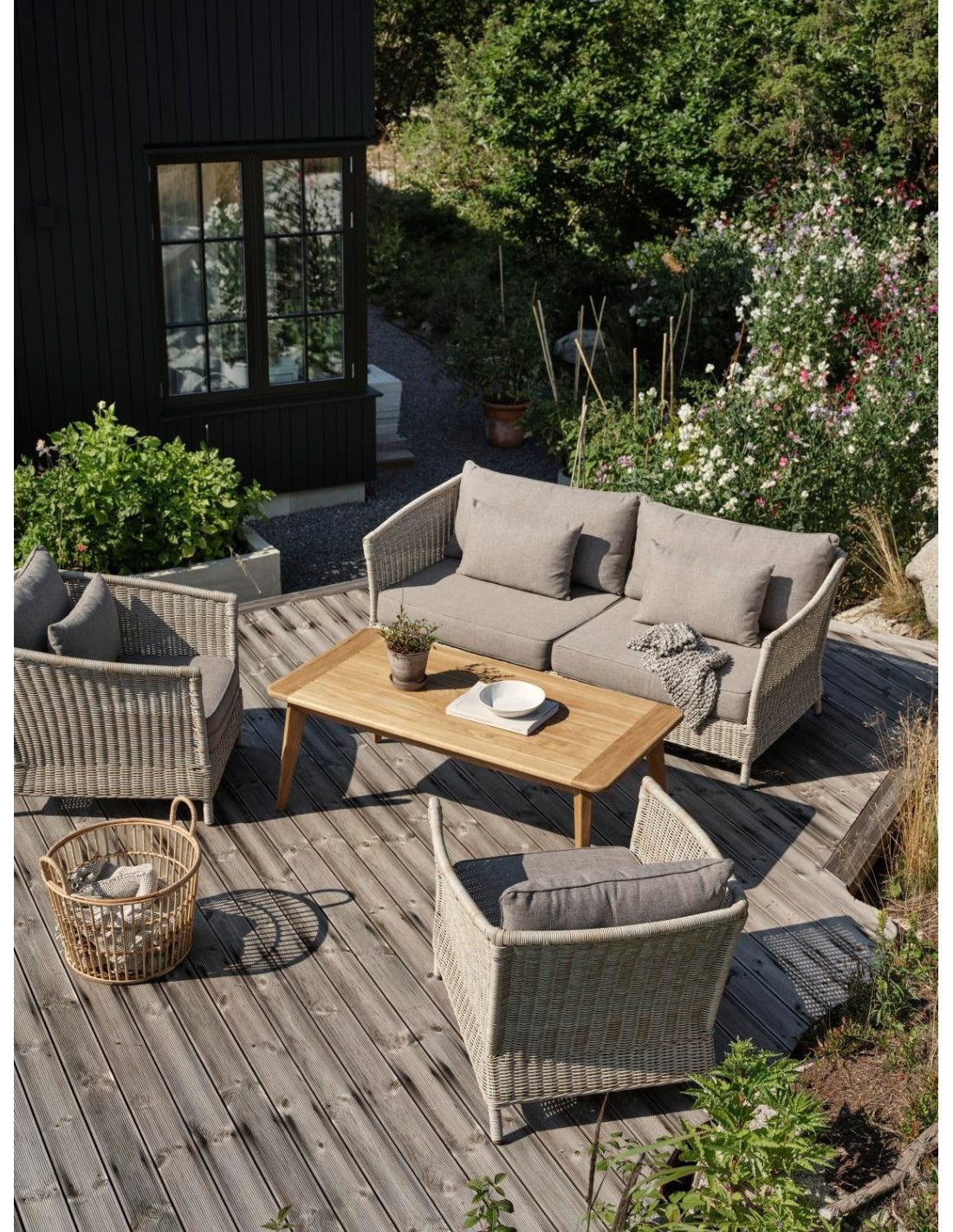 Sofá 3 Plazas Exterior ASTER, Ratán Sintético, Olefina / Beige - Brafab