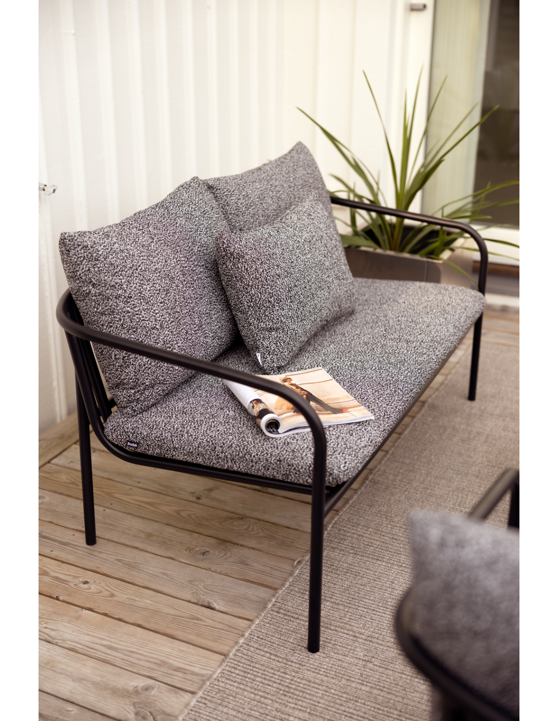 Disfruta del exterior con confianza, sabiendo que el sofá y el sillón Bendt están diseñados para resistir los elementos sin perder su encanto atemporal. El diseño abierto no solo aporta un toque moderno, sino que también mejora la ventilación, garantizando una experiencia fresca y agradable incluso en los días más calurosos. Los sillones también son apilables y pueden colocarse sobre el sofá para ocupar el mínimo espacio al guardarlos, por ejemplo, en invierno. Tanto si organizas reuniones íntimas como si buscas un refugio tranquilo para relajarte a solas, Bendt te invita a elevar tu espacio exterior con su sutil sofisticación y su innegable comodidad. Da la bienvenida a la esencia del diseño escandinavo en tu oasis exterior y convierte cada momento en una experiencia de calma. Disponible como sofá y sillón y en varios colores. Cojines incluidos.