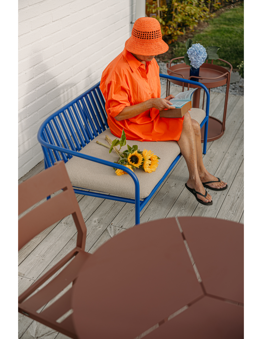 Disfruta del exterior con confianza, sabiendo que el sofá y el sillón Bendt están diseñados para resistir los elementos sin perder su encanto atemporal. El diseño abierto no solo aporta un toque moderno, sino que también mejora la ventilación, garantizando una experiencia fresca y agradable incluso en los días más calurosos. Los sillones también son apilables y pueden colocarse sobre el sofá para ocupar el mínimo espacio al guardarlos, por ejemplo, en invierno. Tanto si organizas reuniones íntimas como si buscas un refugio tranquilo para relajarte a solas, Bendt te invita a elevar tu espacio exterior con su sutil sofisticación y su innegable comodidad. Da la bienvenida a la esencia del diseño escandinavo en tu oasis exterior y convierte cada momento en una experiencia de calma. Disponible como sofá y sillón y en varios colores. Cojines incluidos.