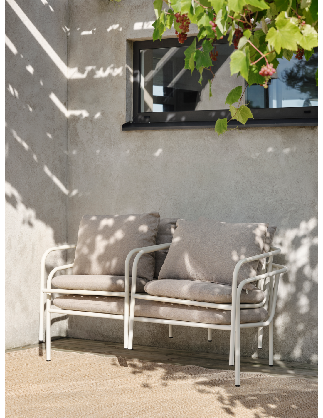 Disfruta del exterior con confianza, sabiendo que el sofá y el sillón Bendt están diseñados para resistir los elementos sin perder su encanto atemporal. El diseño abierto no solo aporta un toque moderno, sino que también mejora la ventilación, garantizando una experiencia fresca y agradable incluso en los días más calurosos. Los sillones también son apilables y pueden colocarse sobre el sofá para ocupar el mínimo espacio al guardarlos, por ejemplo, en invierno. Tanto si organizas reuniones íntimas como si buscas un refugio tranquilo para relajarte a solas, Bendt te invita a elevar tu espacio exterior con su sutil sofisticación y su innegable comodidad. Da la bienvenida a la esencia del diseño escandinavo en tu oasis exterior y convierte cada momento en una experiencia de calma. Disponible como sofá y sillón y en varios colores. Cojines incluidos.