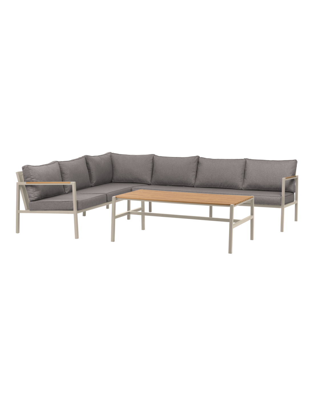 Set Sofá 214x279x81 cm y Mesa de Centro CAP, Aluminio, Textilene, Madera Sintética / Gris Claro / Gris - Brafab
