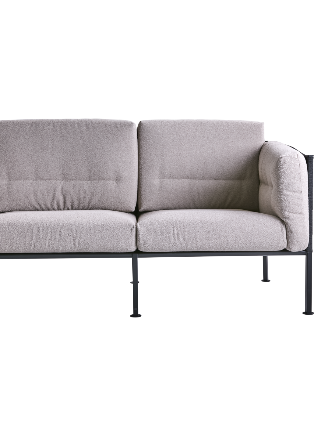 Un sofá cómodo y acogedor. Delux. El nombre evoca calidez, suavidad y lujo, y cumple cada promesa. La estructura de acero inoxidable, los laterales y respaldo de textilene suave y los cojines extra suaves de espuma Super-Soft garantizan un confort inigualable. Cojines en tejido olefina exterior con aspecto bouclé. Delux ofrece todo lo que se puede desear en mobiliario de exterior.