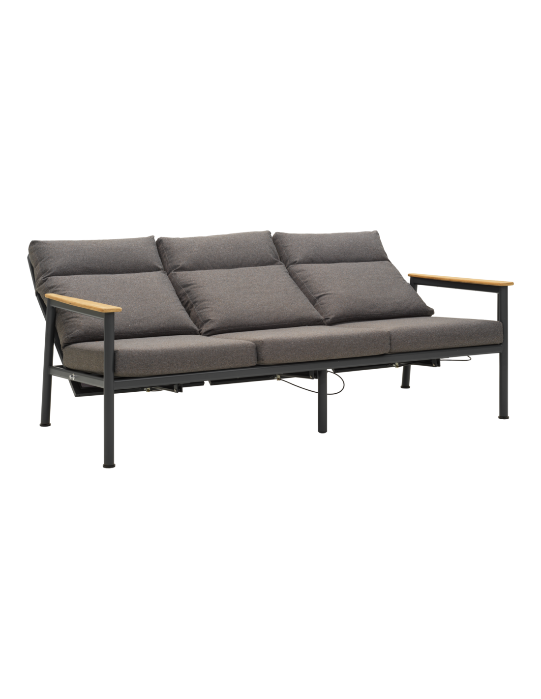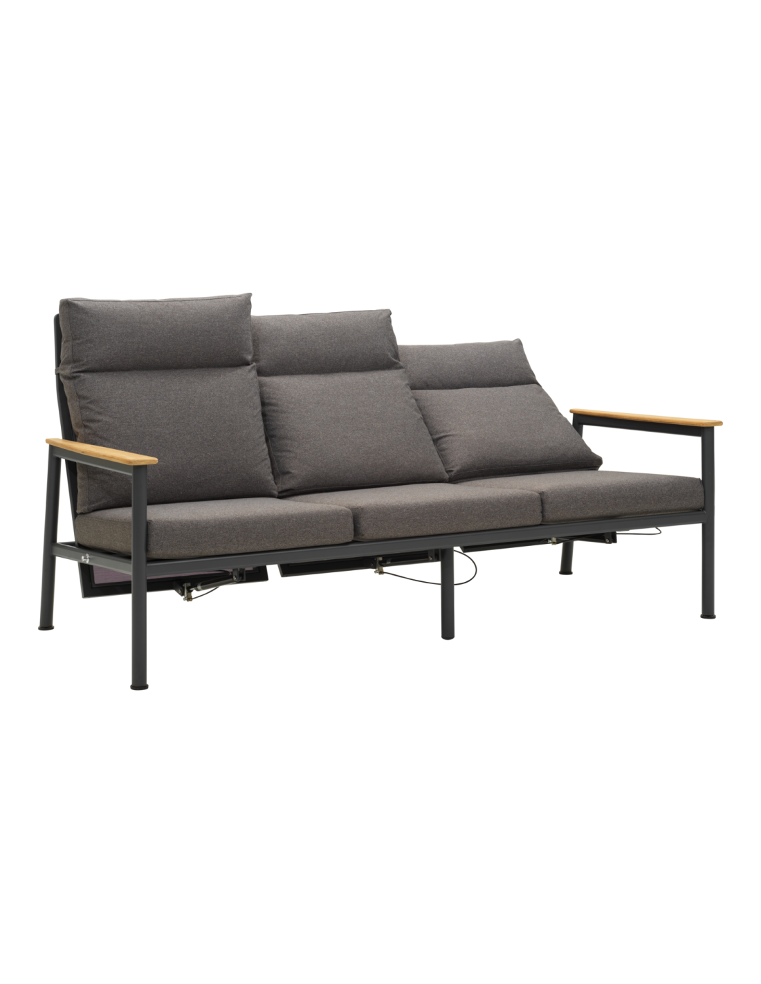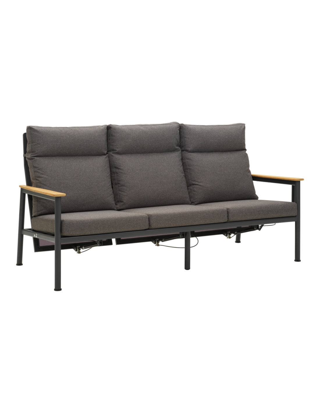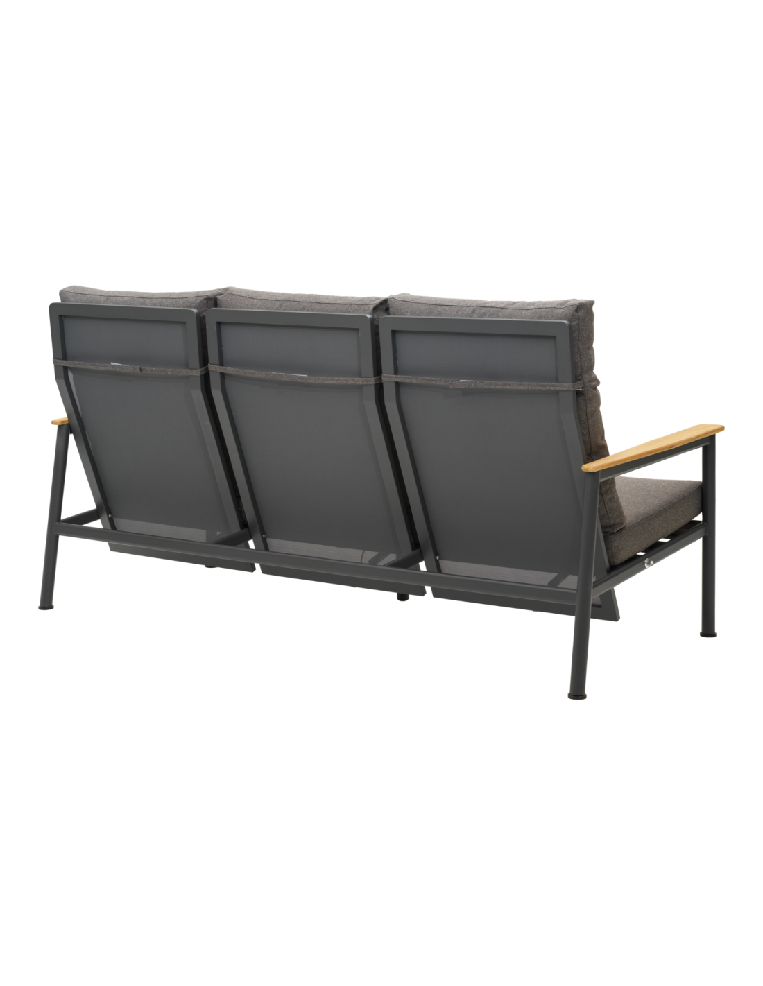 Sofá 3 Plazas Exterior GORDON, Aluminio, Textilene, Teca / Gris Antracita - Brafab