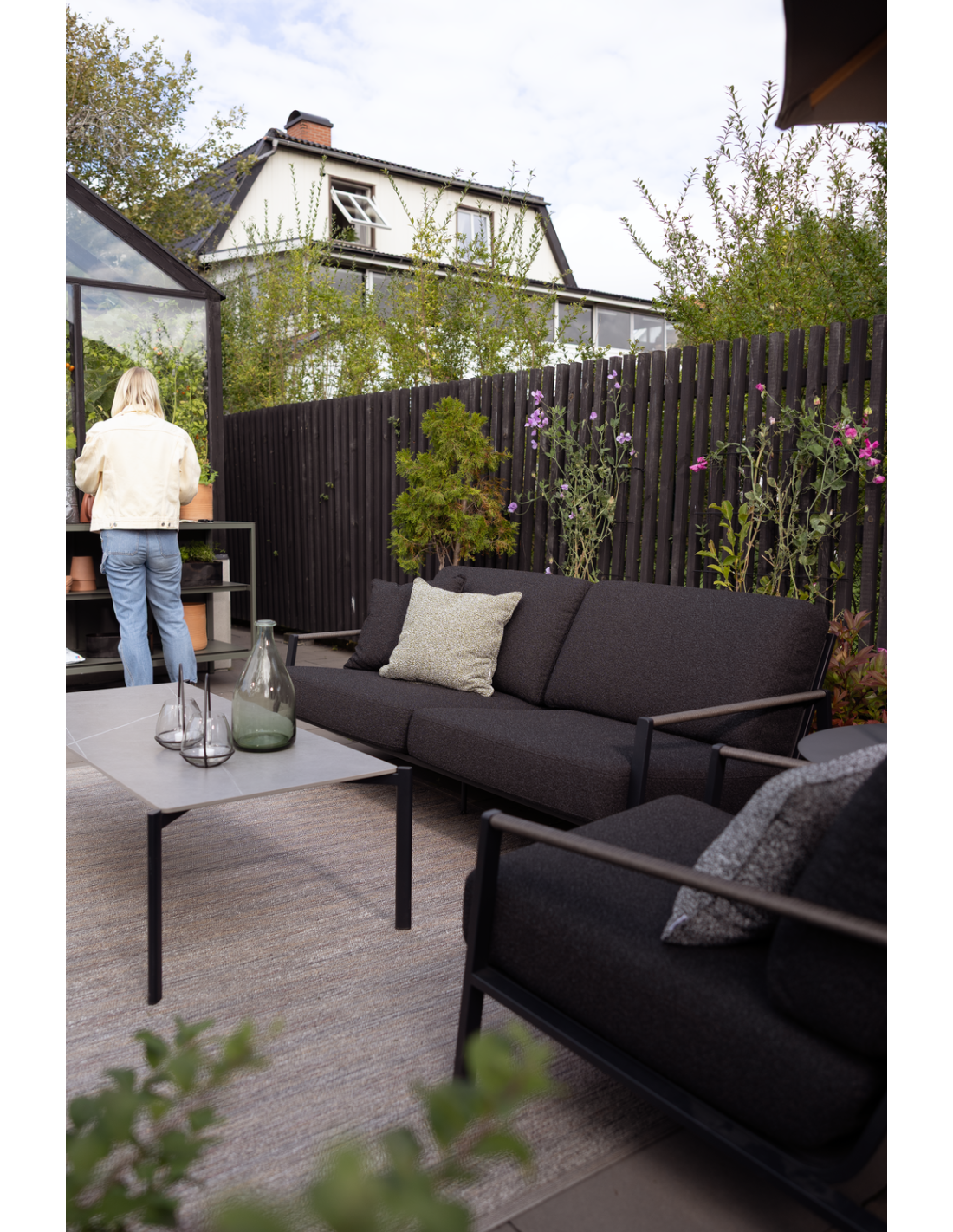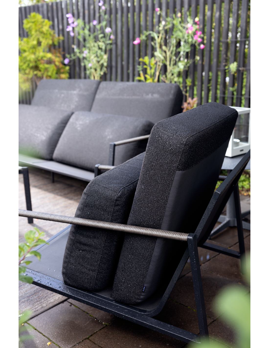 Un hermoso sofá que encaja perfectamente en el momento, con un diseño que causa impresión. Gran profundidad de asiento con una inclinación agradable y cojines gruesos increíblemente cómodos; aquí puedes relajarte con estilo. Los detalles de ratán sintético en los reposabrazos refuerzan la sensación de diseño cuidado. Cojines en tejido olefina con forro TPU repelente al agua. Lyra es una serie moderna y muy elegante con una encantadora mezcla de materiales. La estructura es de acero inoxidable (304) con recubrimiento en polvo negro, perfecta para resistir diversas condiciones climáticas. Bonitos detalles de ratán artificial en los reposabrazos.