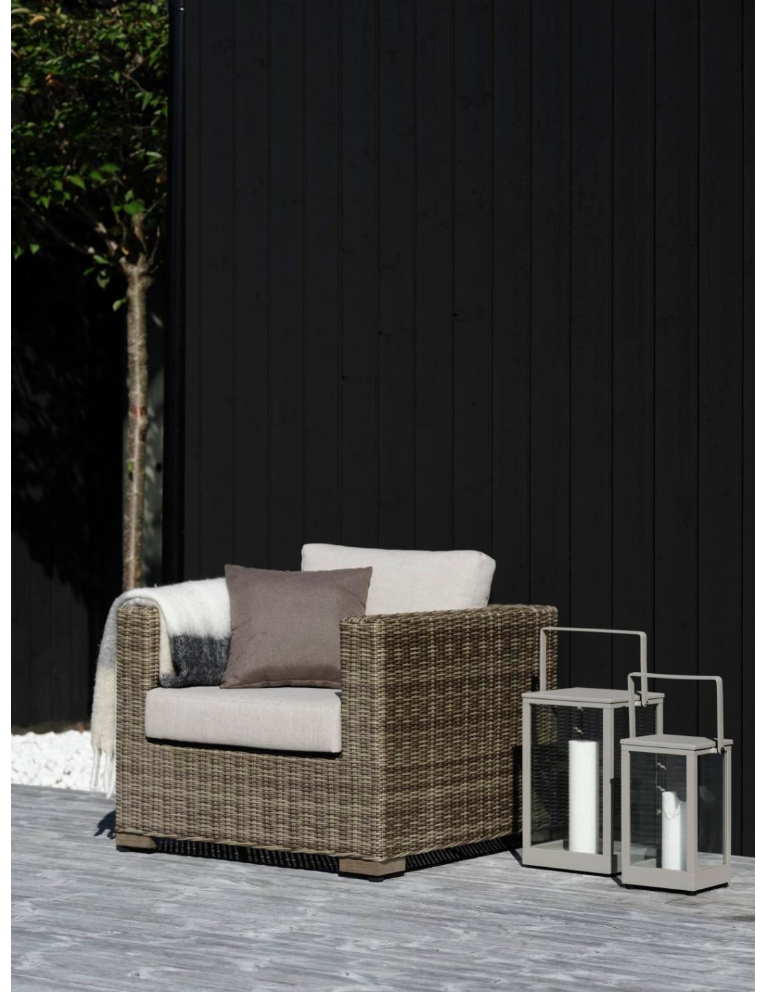 Un sillón clásico en ratán sintético denso y rústico. Un asiento cómodo y atemporal. Elegantes cojines en tejido olefina reforzado y repelente al agua elevan la comodidad al siguiente nivel. Ninja es una de nuestras series con infinitas posibilidades de combinación. Tiene todo lo necesario para crear un conjunto de descanso o comedor bonito y confortable a tu propio estilo.