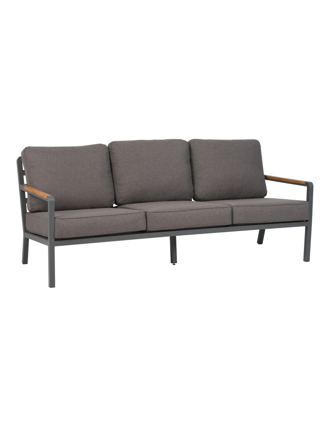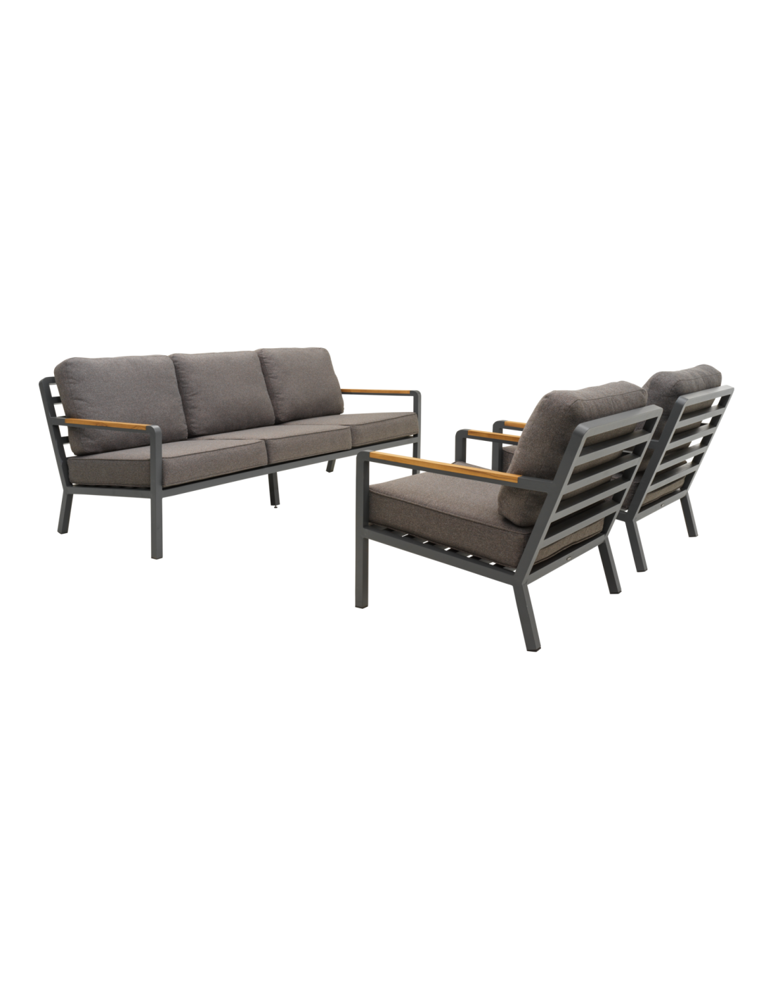 Set Exterior Sofá 3 Plazas y 2 Sillones NOVA, Aluminio, Poliéster Reciclado, Teca / Gris Antracita / Taupé - Brafab