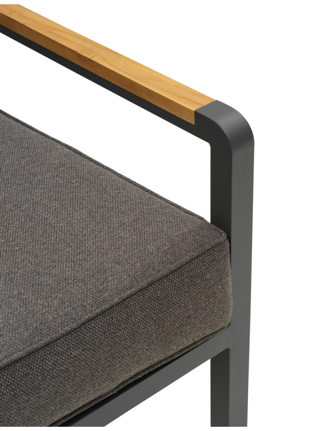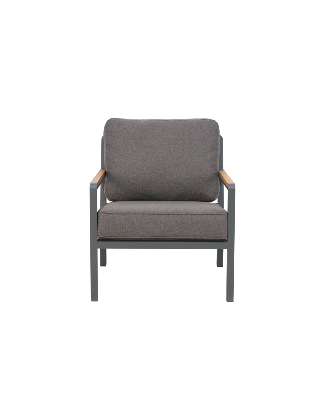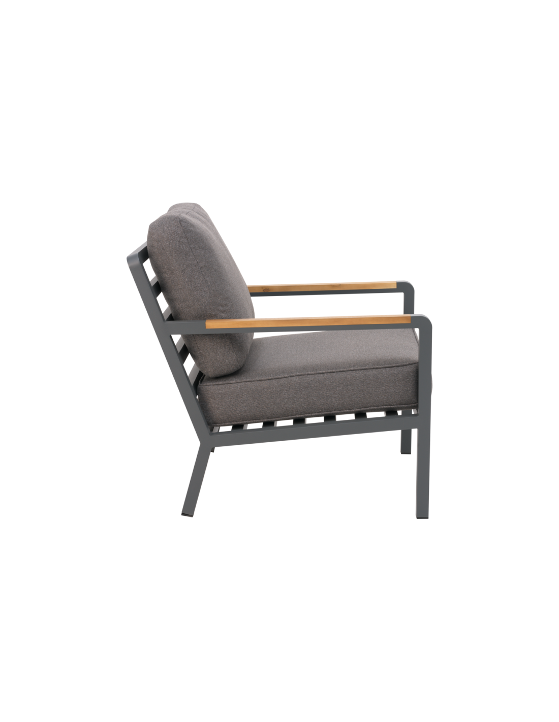Una serie lounge moderna con una expresión sofisticada. El asiento profundo y los cojines con forro TPU repelente al agua proporcionan comodidad y practicidad duraderas. La generosa inclinación potencia la sensación de relax, mientras que las inserciones sólidas de teca en los reposabrazos aportan calidez natural y un elegante contraste con la estructura de aluminio. La serie también puede apilarse para facilitar el almacenamiento.