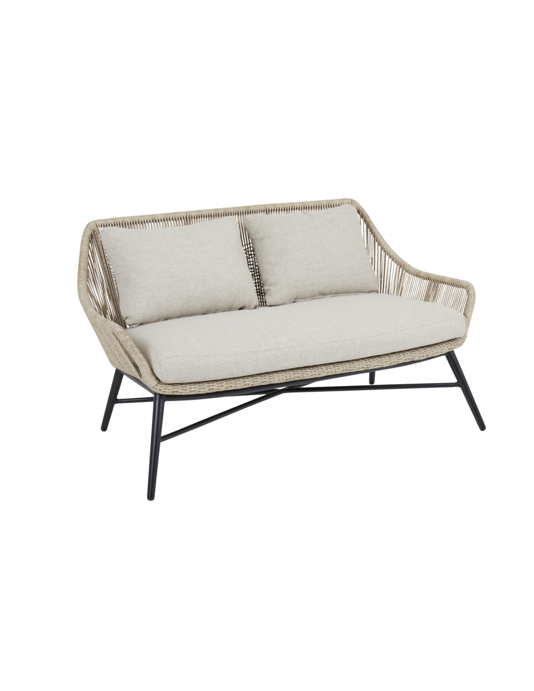 Sofá 2 Plazas Exterior PEMBROKE, Ratán Sintético, Olefina / Beige - Brafab