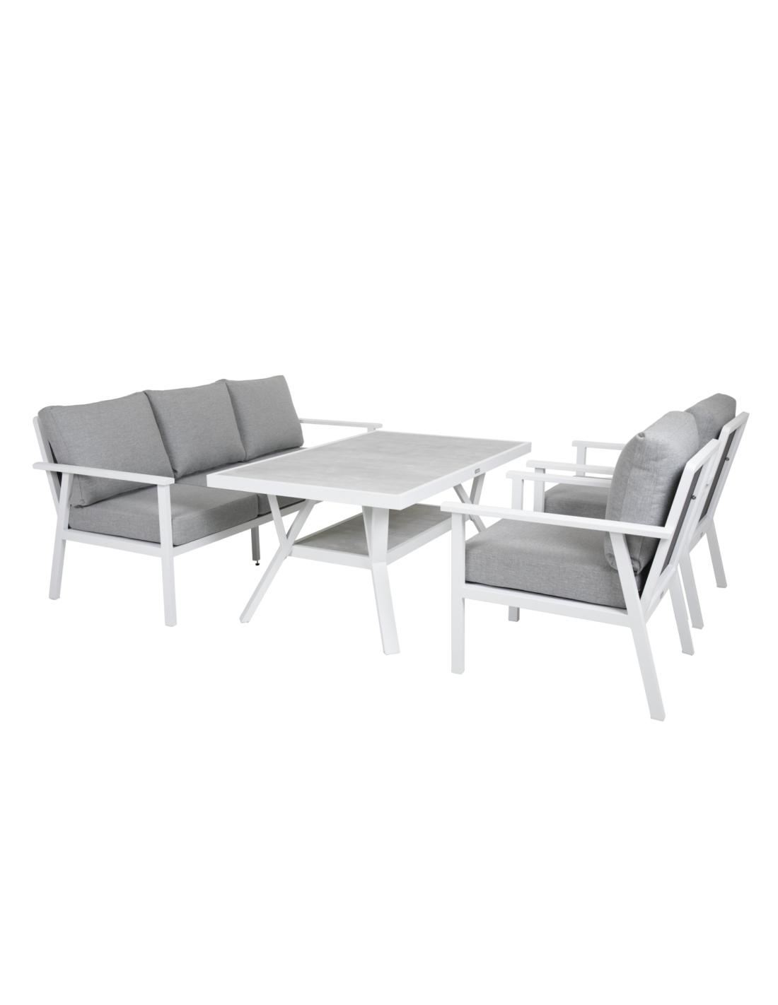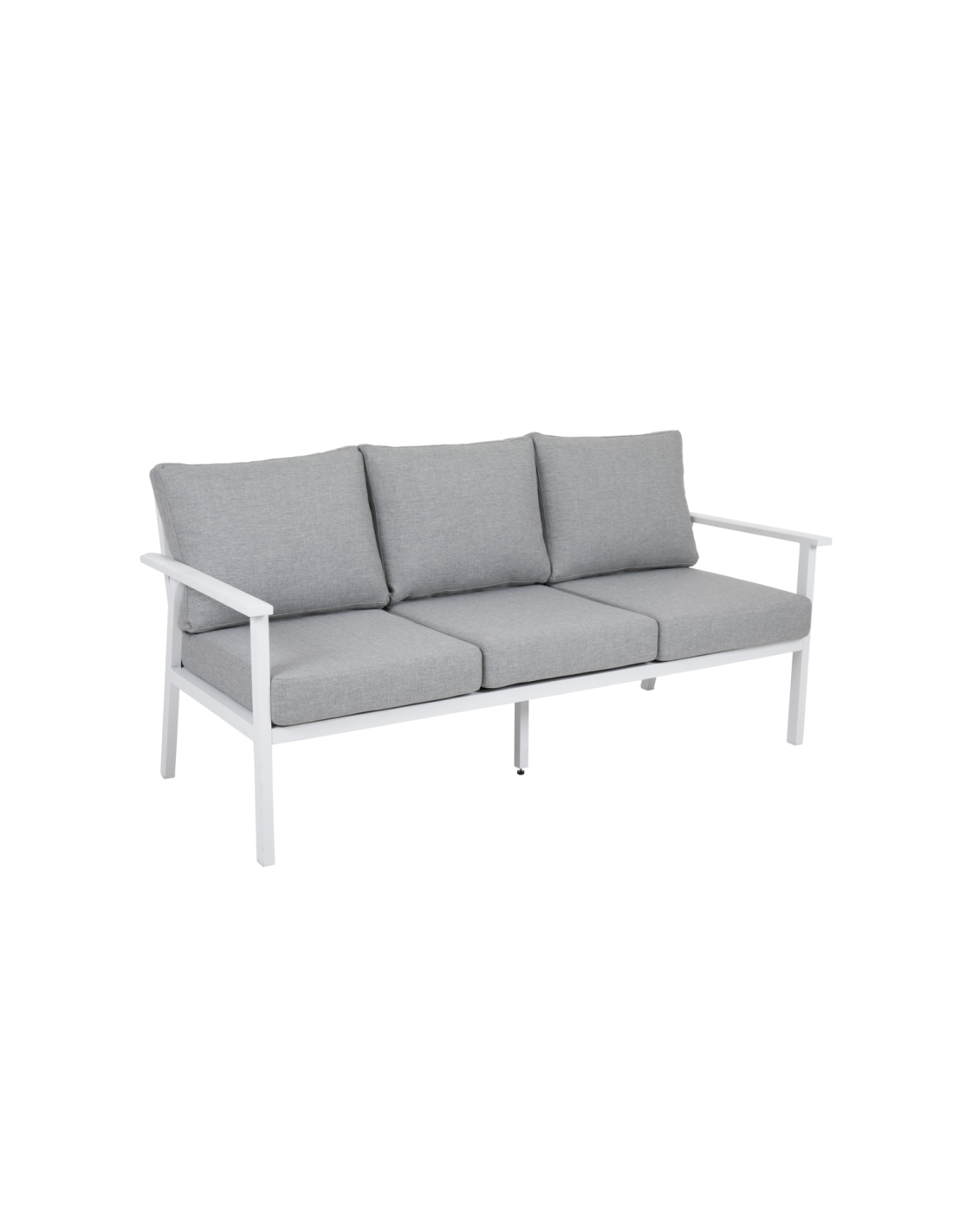 Sofá Alto 3 Plazas Exterior SAMVARO, Aluminio, Textilene / Blanco / Gris Perla - Brafab