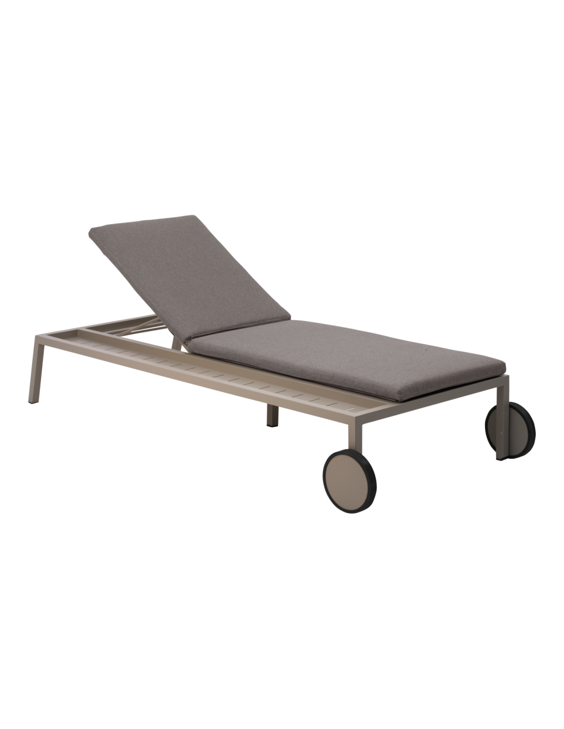 Esta tumbona extra ancha ofrece un confort generoso con una balda lateral integrada en el lado derecho para bebidas, libros o protector solar. Gracias a sus ruedas es fácil de mover, y con tejidos suaves y un diseño pensado para la relajación aporta aún más comodidad y elegancia a tu espacio exterior. El cojín incluye forro TPU. Una serie moderna pero clásica en aluminio con muchas posibilidades de combinación.