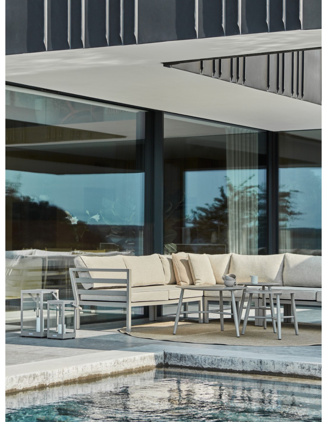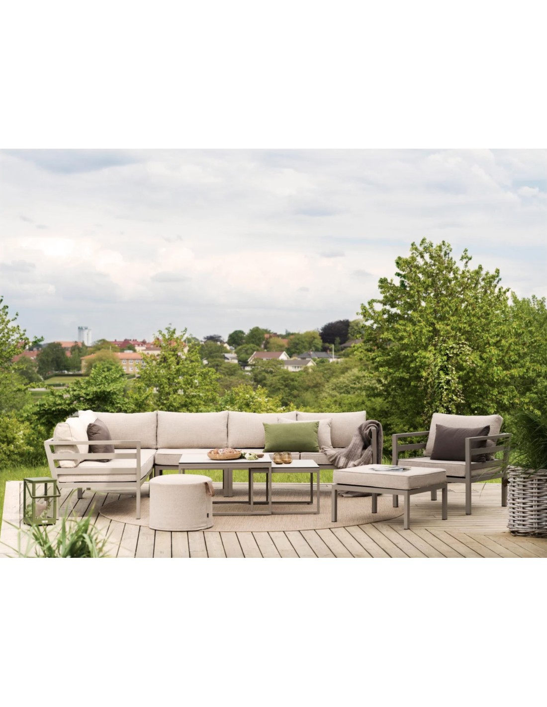Siéntate con comodidad y estilo. Un amplio y elegante sofá esquinero que extiende tu hogar hacia el exterior. Los asientos generosos están enmarcados por líneas transversales en los reposabrazos y el respaldo tiene un ángulo perfecto para relajarse. Weldon es una serie de atractivo diseño mate con cojines para todo clima.