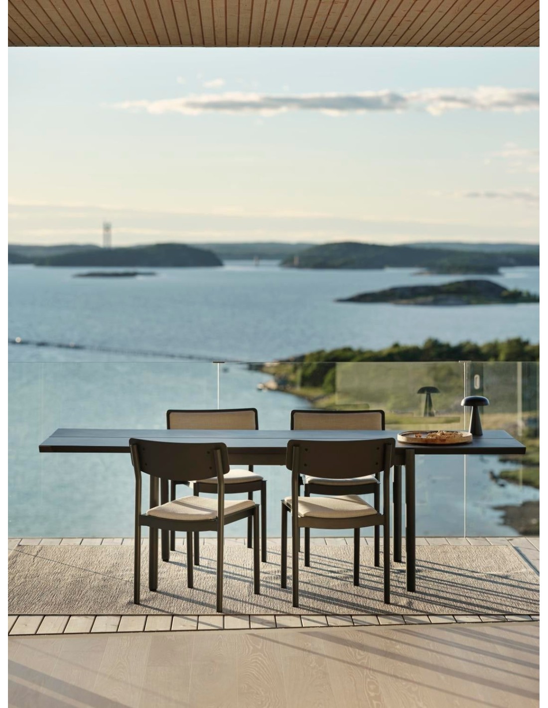 Completamente de aluminio, la mesa B45 aporta una sensación moderna: sobria, pero a la vez acogedora, y con espacio para muchos. Gracias a la pintura fonoabsorbente en la parte inferior del tablero, se amortigua el ruido de vasos y porcelana. B45 está disponible en dos longitudes (180 y 250 cm), con un detalle de diseño: la distancia entre las patas es la misma en ambas. Los bordes del tablero tienen un elegante ángulo de 45 grados, un detalle que llama la atención. Disponible en dos colores.