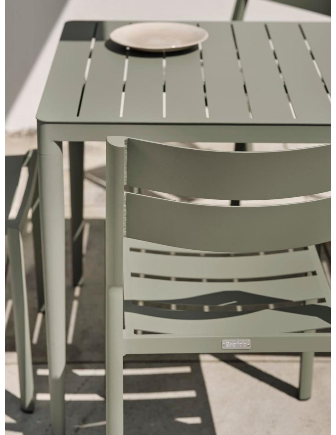 Mesa Exterior BIGBY 76x76 cm de Comedor, Aluminio / Verde Empolvado - Brafab