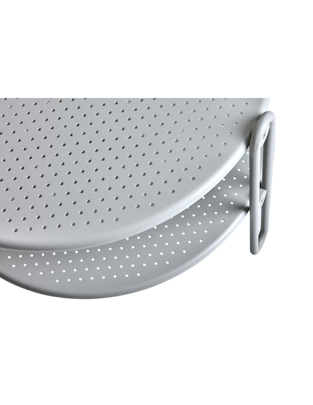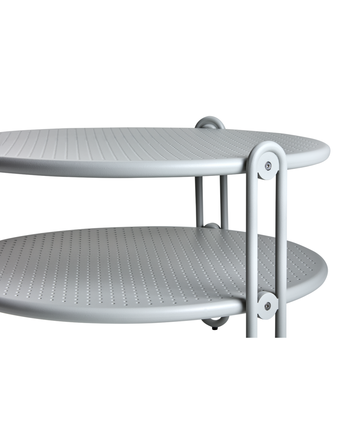 La mesa de centro redonda Blixt está disponible en dos alturas y tamaños: una más alta (42 cm) con un diámetro de 65 cm y otra más baja (39 cm) con un diámetro de 85 cm. Los dos discos redondos de metal, a diferentes niveles, están perforados: un detalle tan estiloso como práctico. Disponible en Negro, Gris Claro y Blanco Perla. Funciona sola o en pareja: las medidas se solapan gracias a la diferencia de altura.
