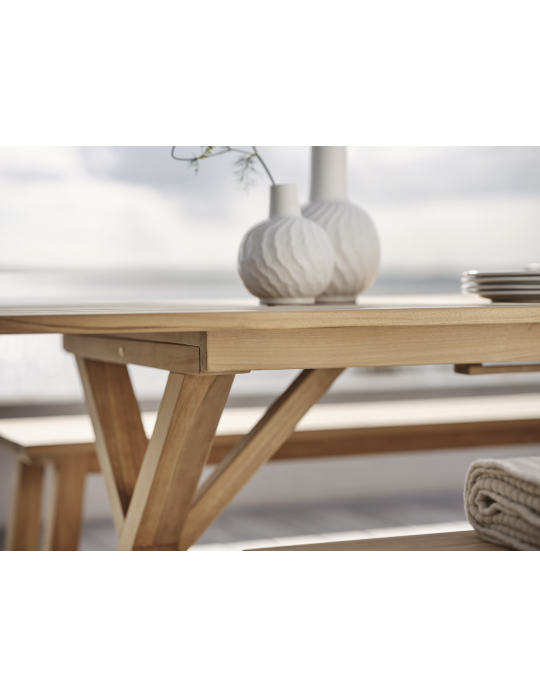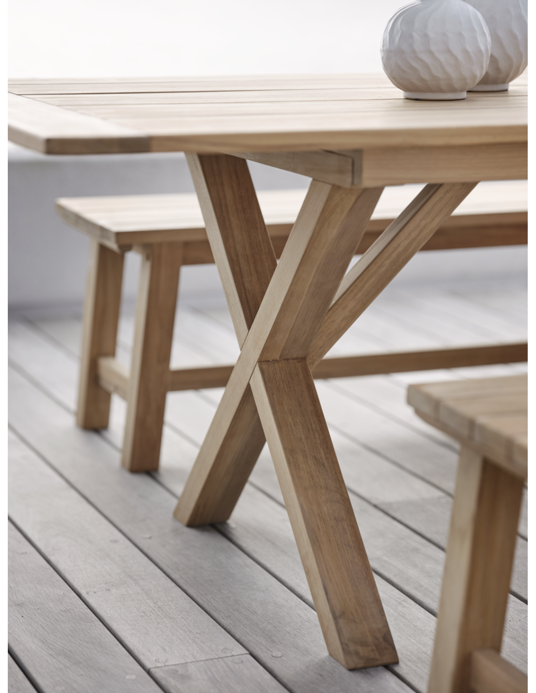 Brutus: una mesa estable de teca con bonitas patas cruzadas y un tamaño generoso. Brutus es una mesa contundente que encuentra de forma natural su lugar en el centro. Una forma profundamente arraigada en la mentalidad escandinava. Disponible con extensión (tipo mariposa) o sin ella. Nuestras sillas de ratán artificial son perfectas para combinar. La opción básica mide dos metros y puede ampliarse rápidamente hasta 2,65 metros gracias al práctico sistema mariposa integrado.